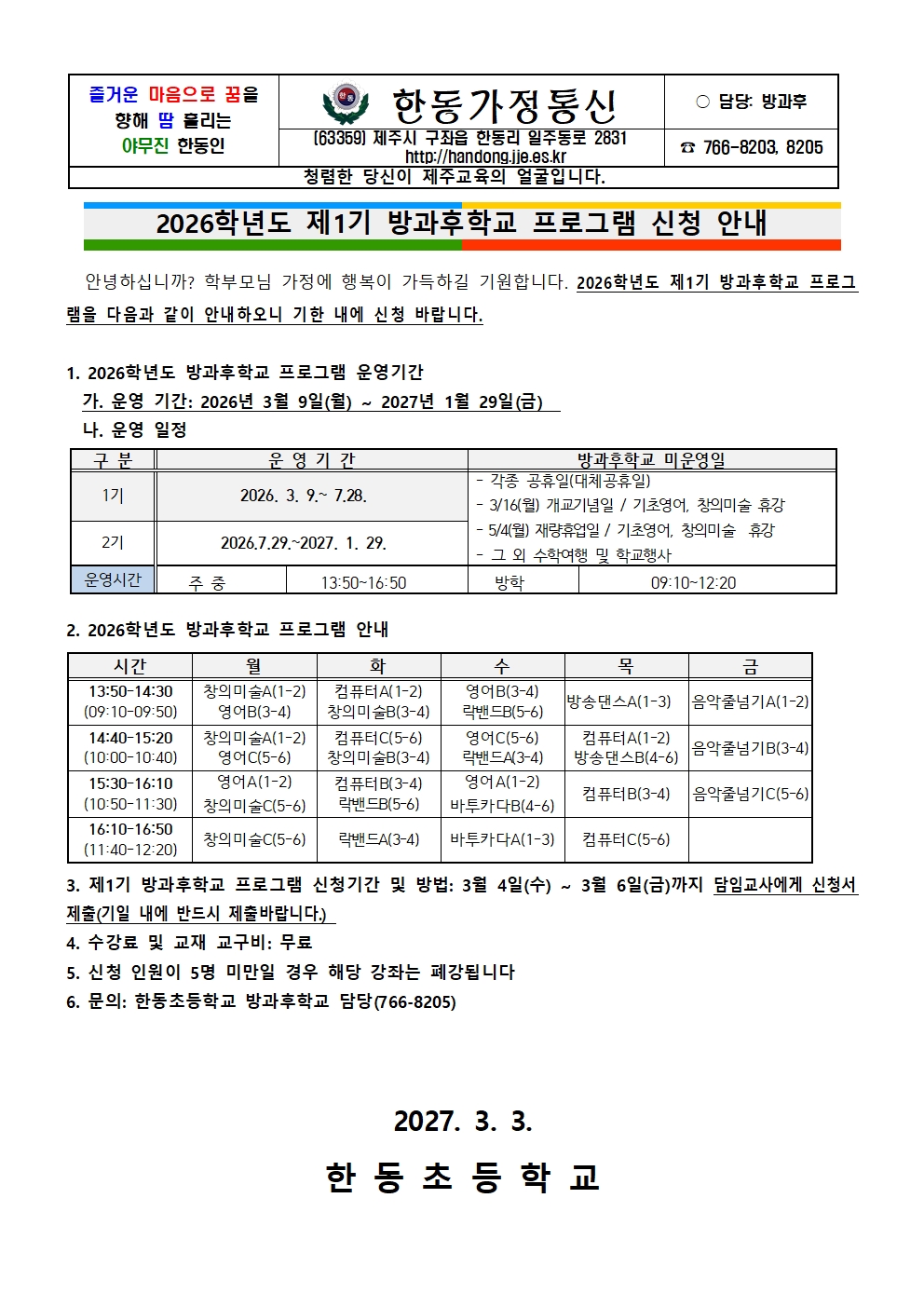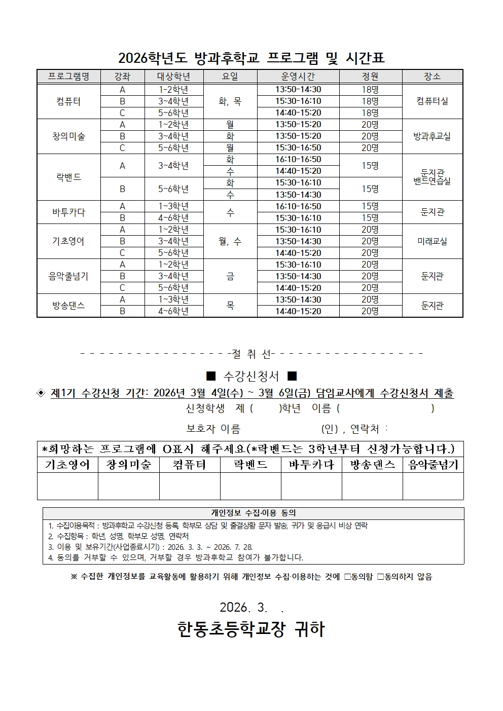 2026학년도 1기 방과후학교 모집 안내