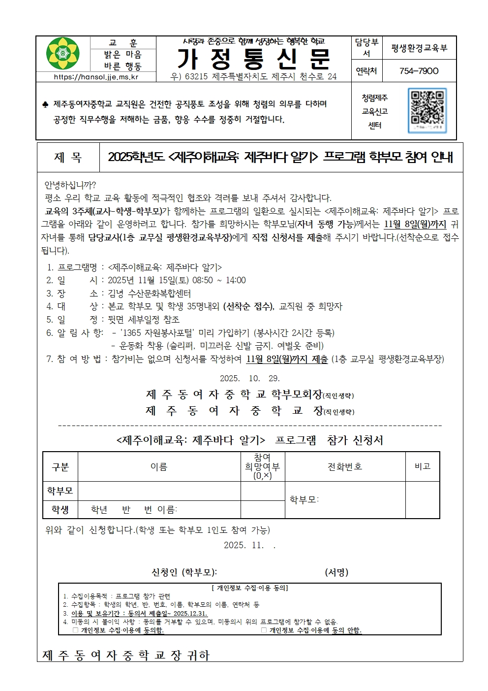 [제주특별자치도교육청 가정통신문] 위기에 처한 아이 어떻게 도와줄까요? [2025 자살예방 및 생명존중 학부모 마음건강 교육(6차) 신청 안내(신청기한 연장)]