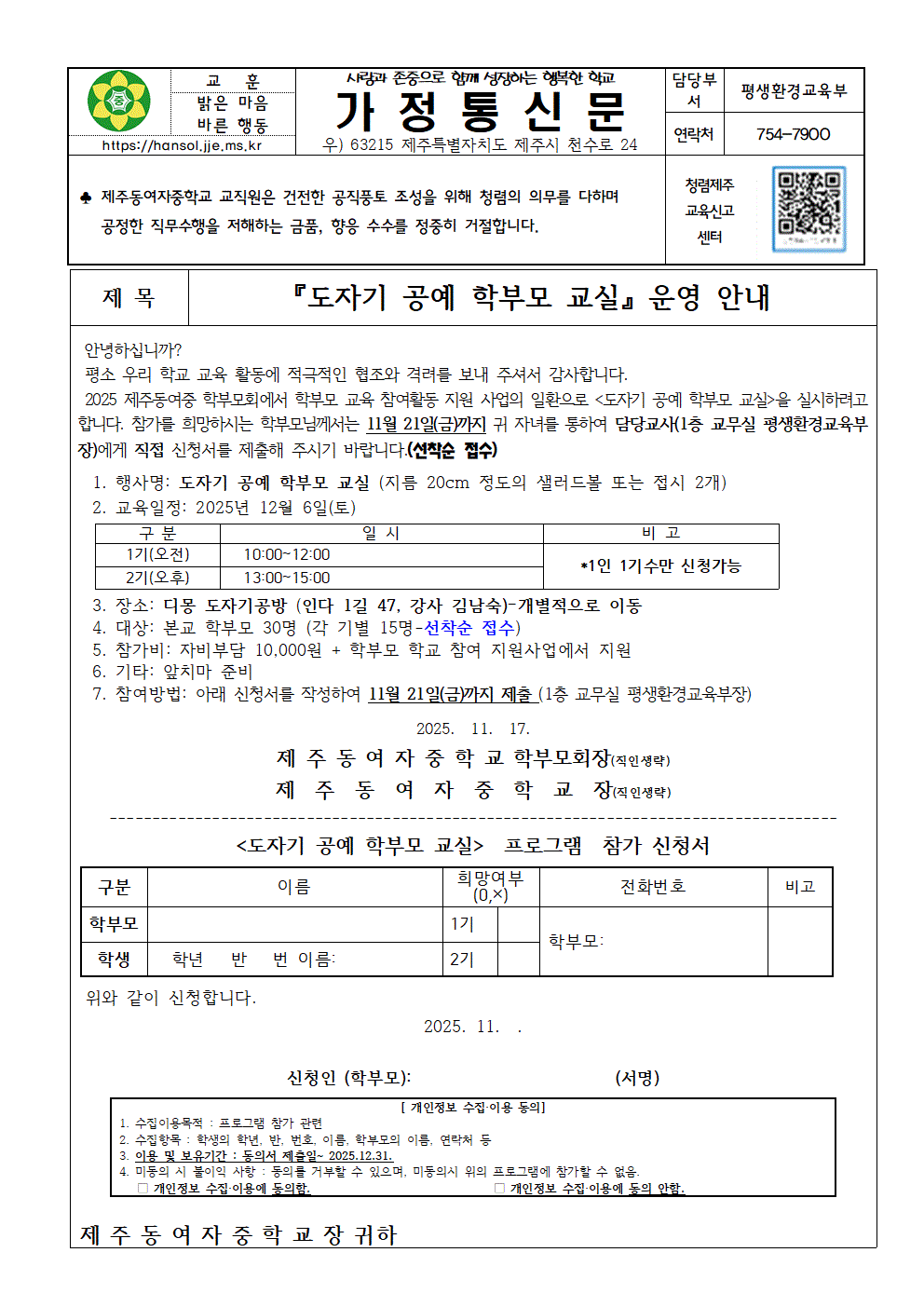 [제주특별자치도교육청 가정통신문] 중학교 대상 고교학점제 설명회 안내(교육부, 온라인 참여 가능)