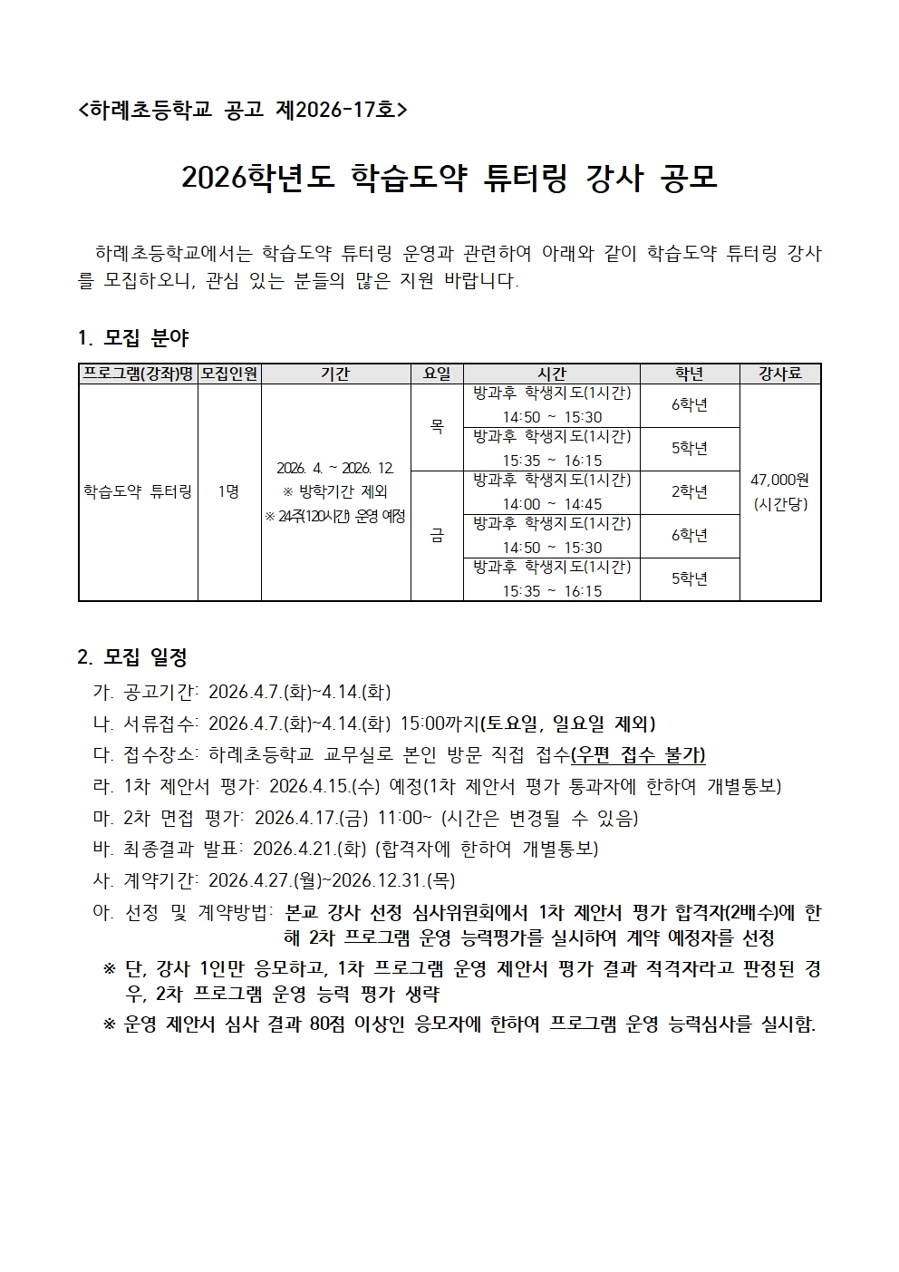 2026학년도 학습도약 튜터링 공고.hwp