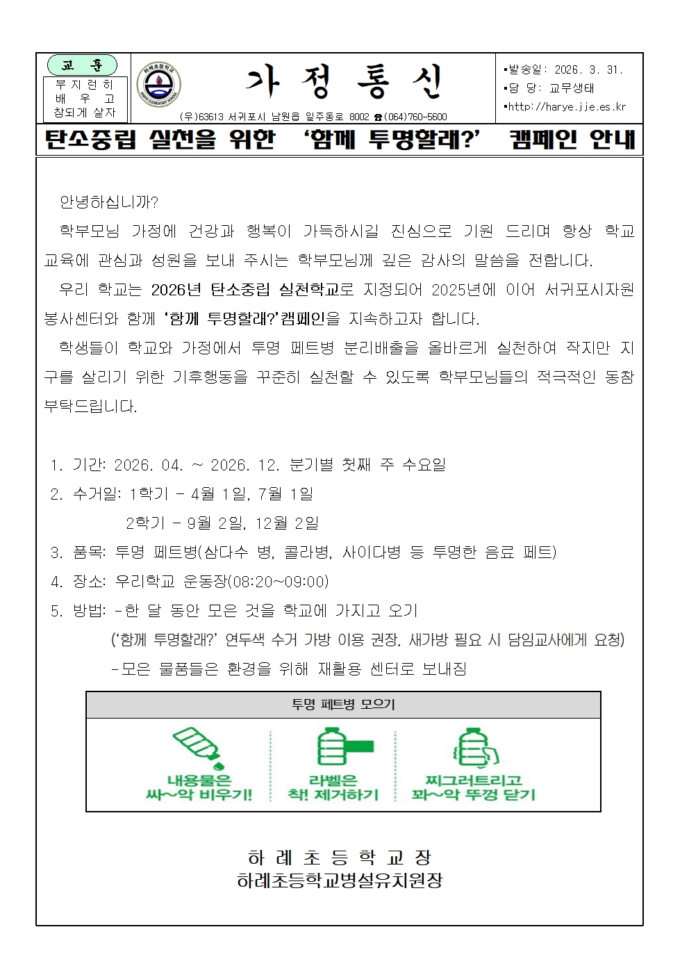 탄소중립 실천을 위한 ‘함께 투명할래?’ 캠페인 안내