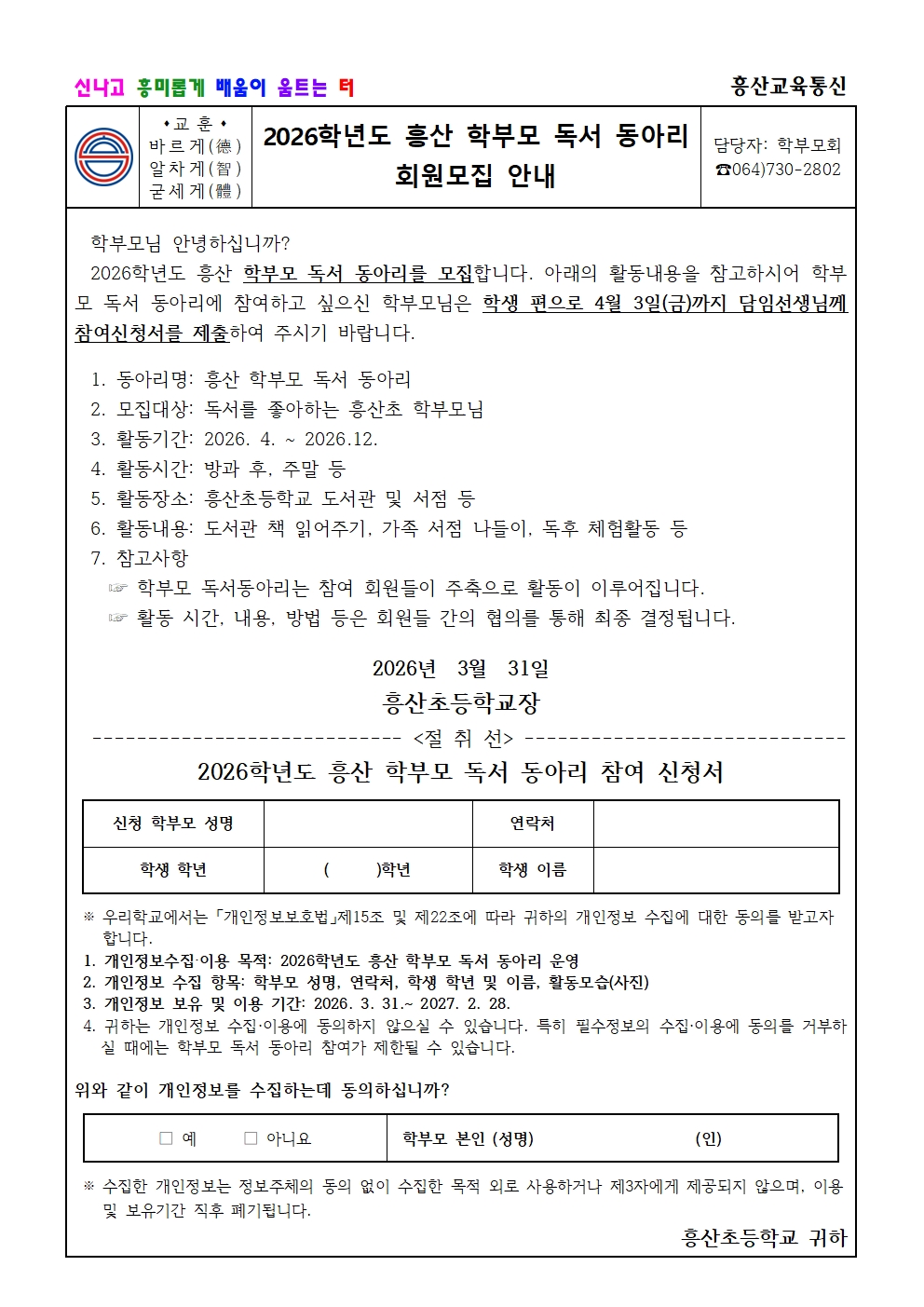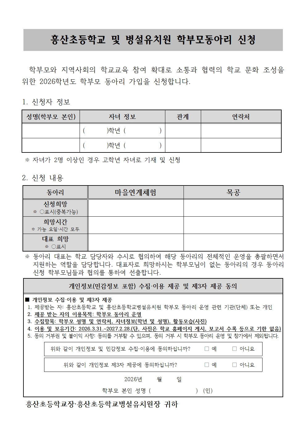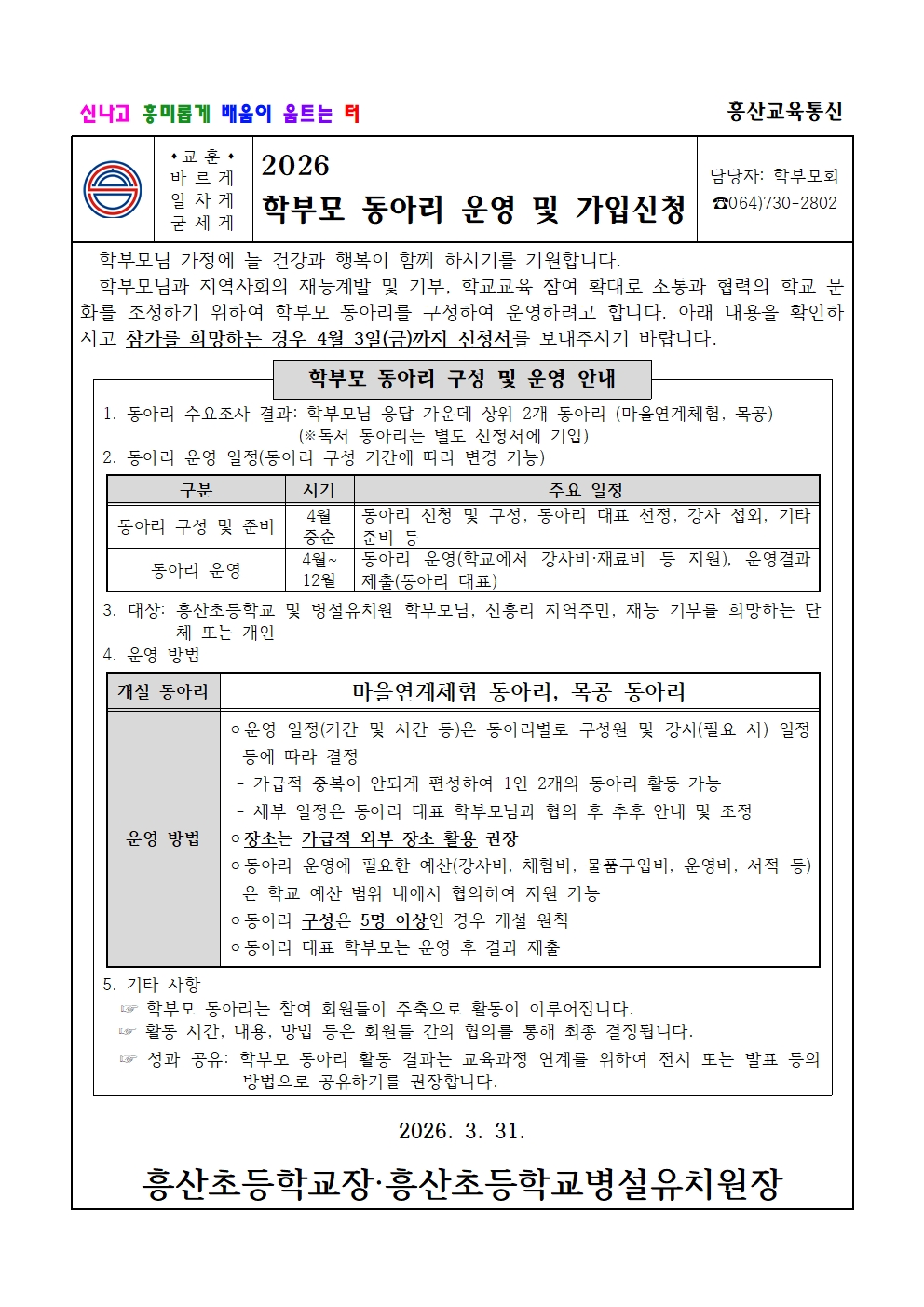 2026 학부모 동아리 가입신청 안내