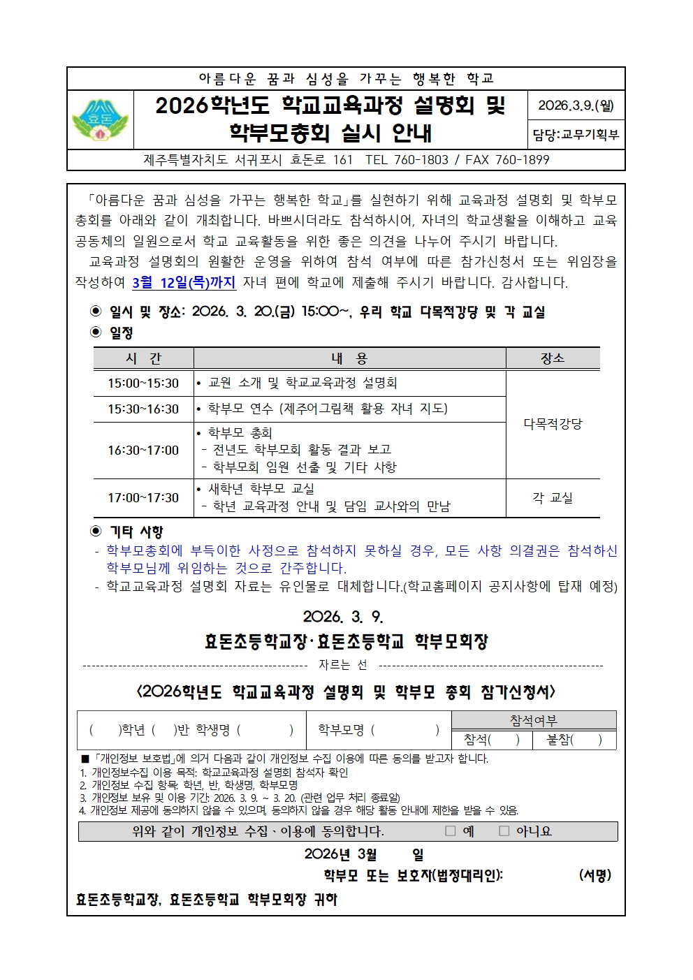 2026학년도 학교교육과정 설명회 및 학부모총회 실시 안내 가정통신문