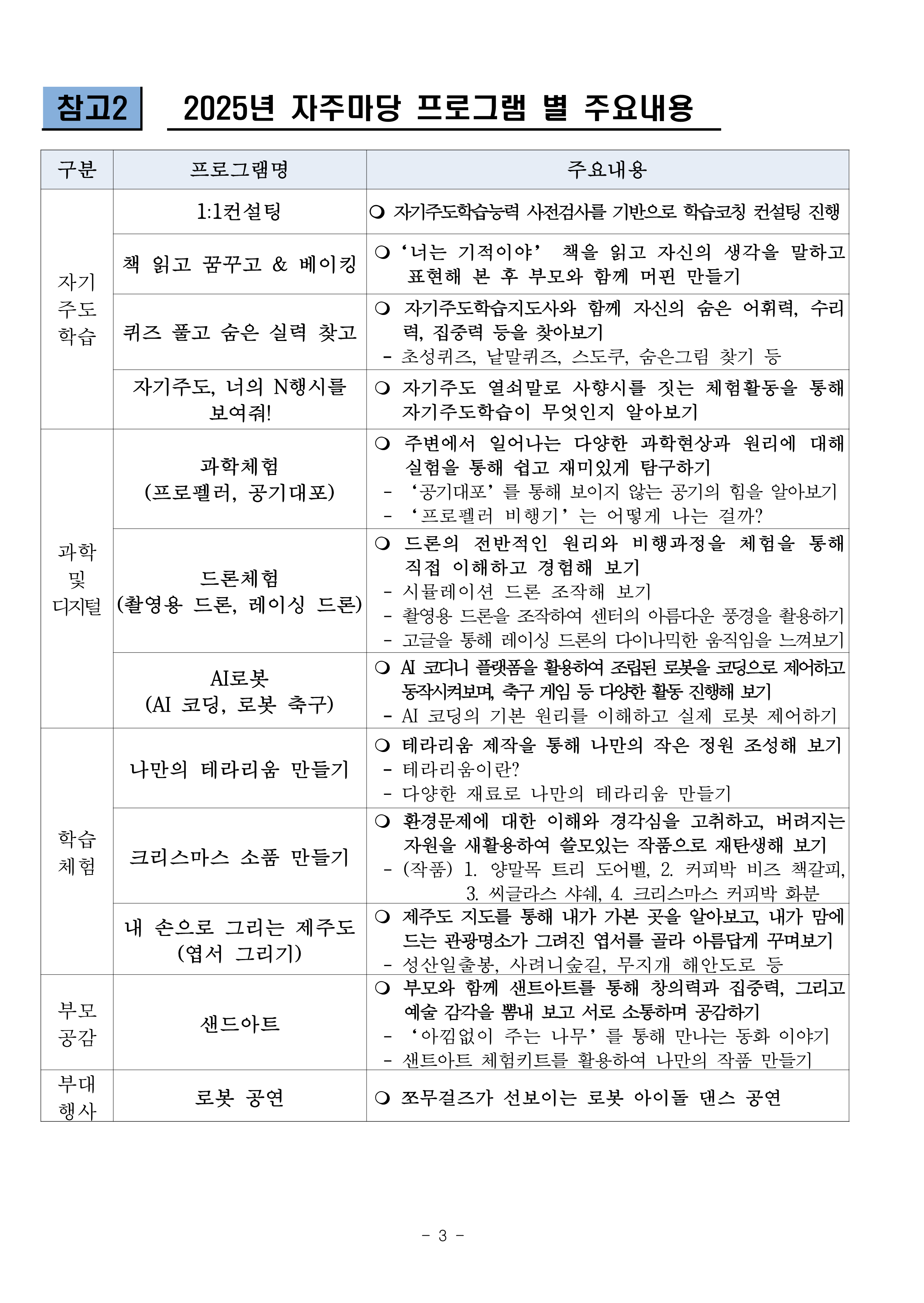 * 주요내용: 자기주도학습 컨설팅, 과학 및 디지털 체험, 부모·자녀 프로그램 등