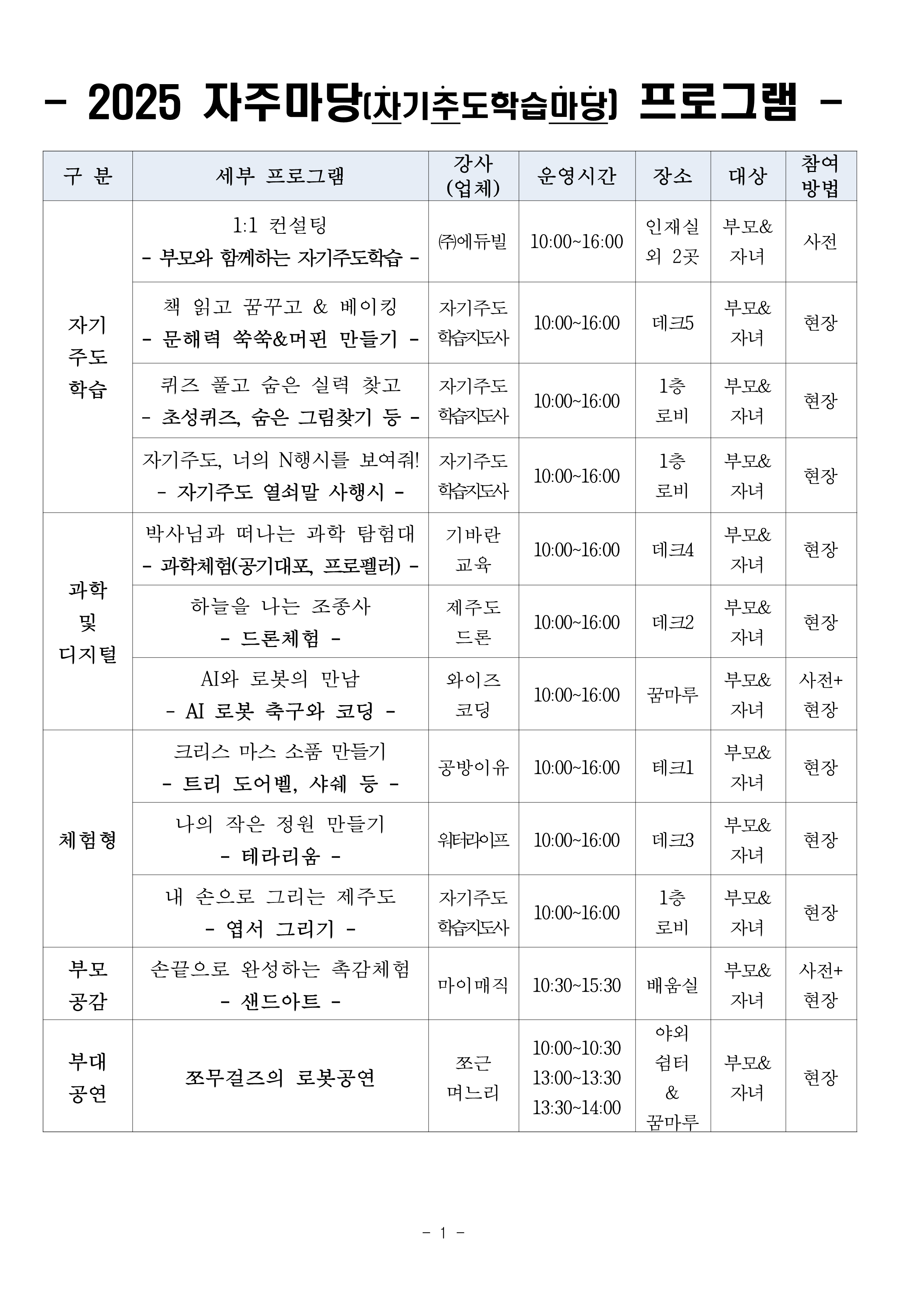 * 행 사 명: 2025년 자주마당(자기주도학습 마당)