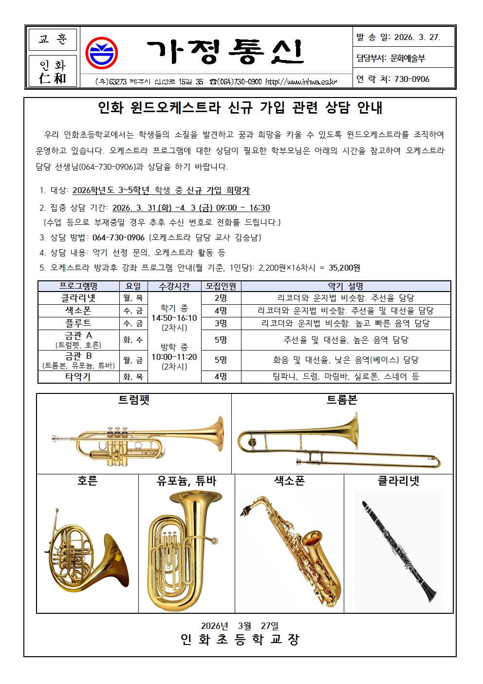 (가정통신문)인화 윈드오케스트라 신규 가입 관련 상담 안내(3.27.).hwp