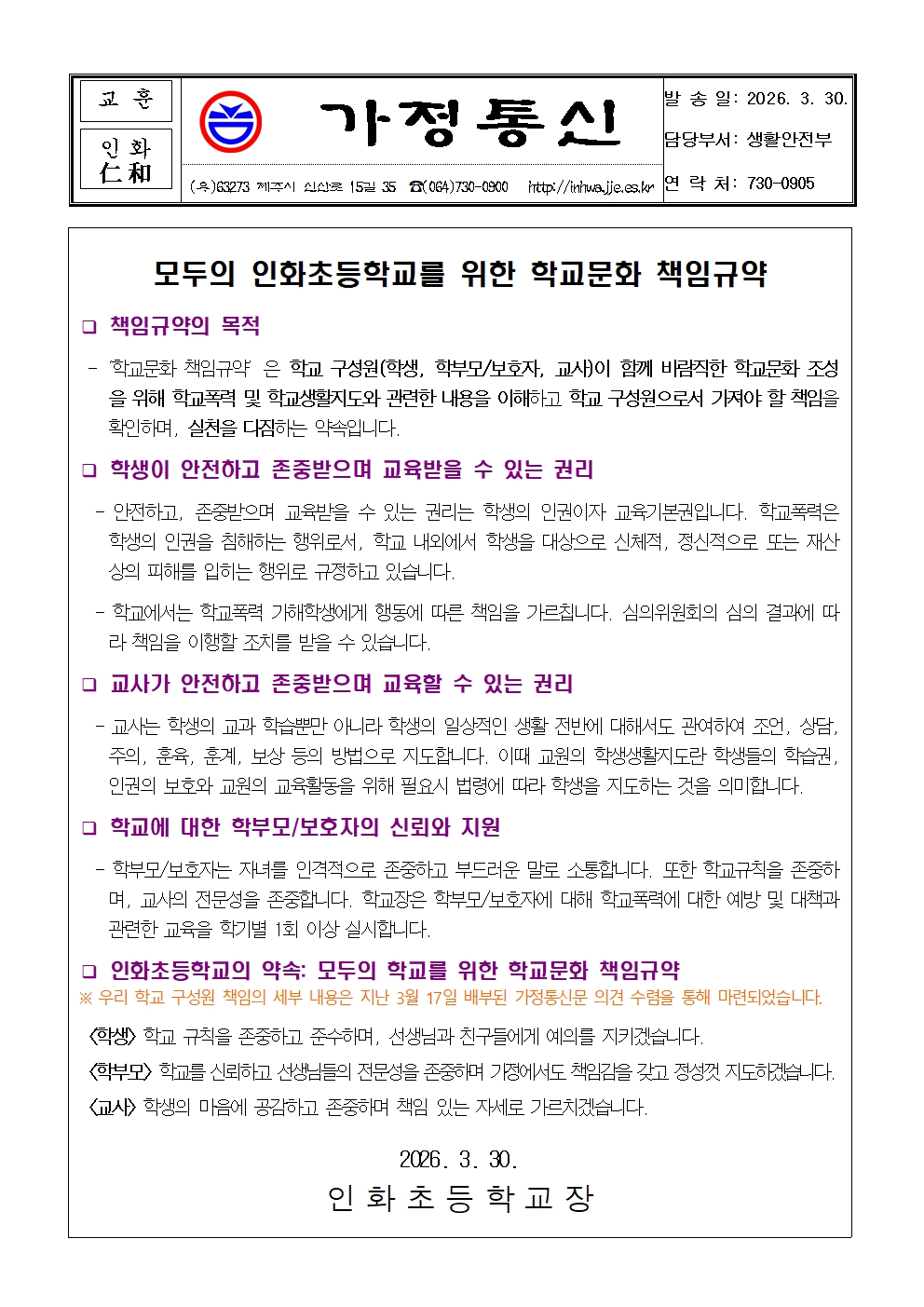 (가정통신문) 학교문화 책임규약 결과 안내.hwp