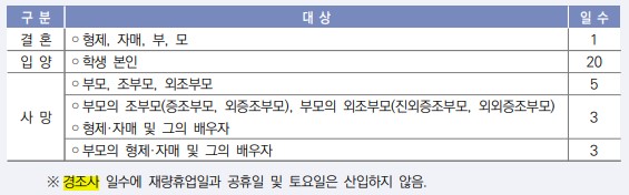 1) 위의 1, 2항을 제외한 부득이한 개인사정( 부모 및 가족 봉양, 가사조력, 간병 등)으로 인한 결석임을 학교장이 인정하는 경우