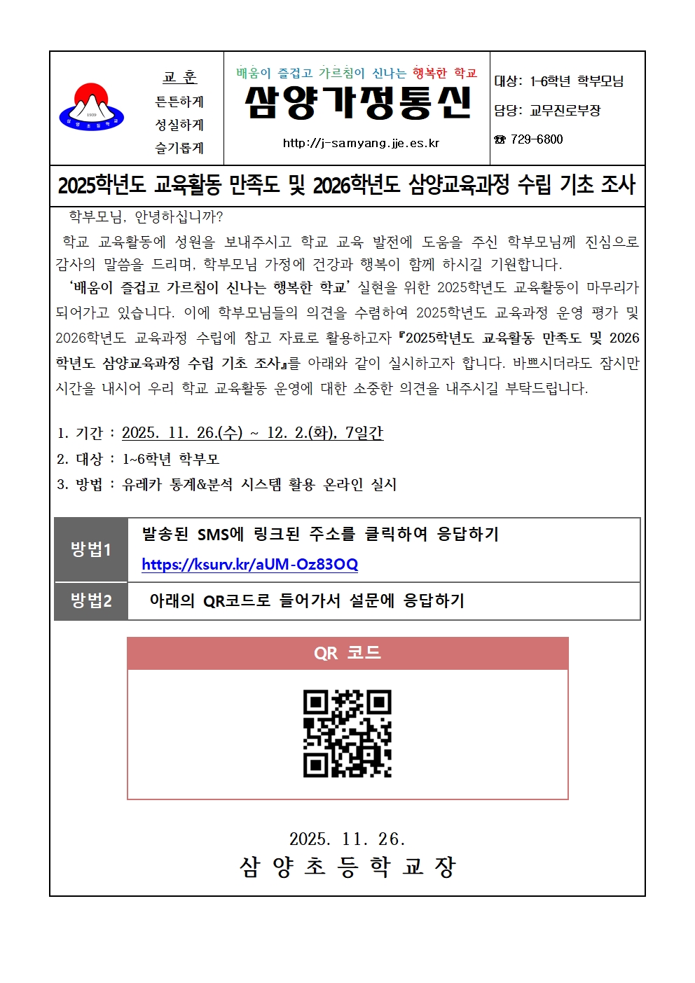 (가정통신)2025학년도 교육활동 만족도 및 2026학년도 삼양교육과정 수립 기초 조사 안내.hwp