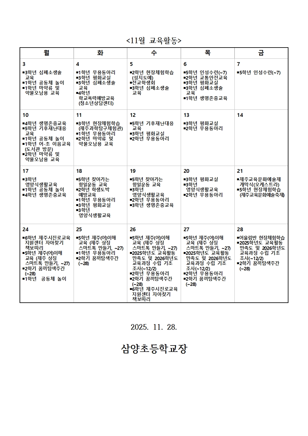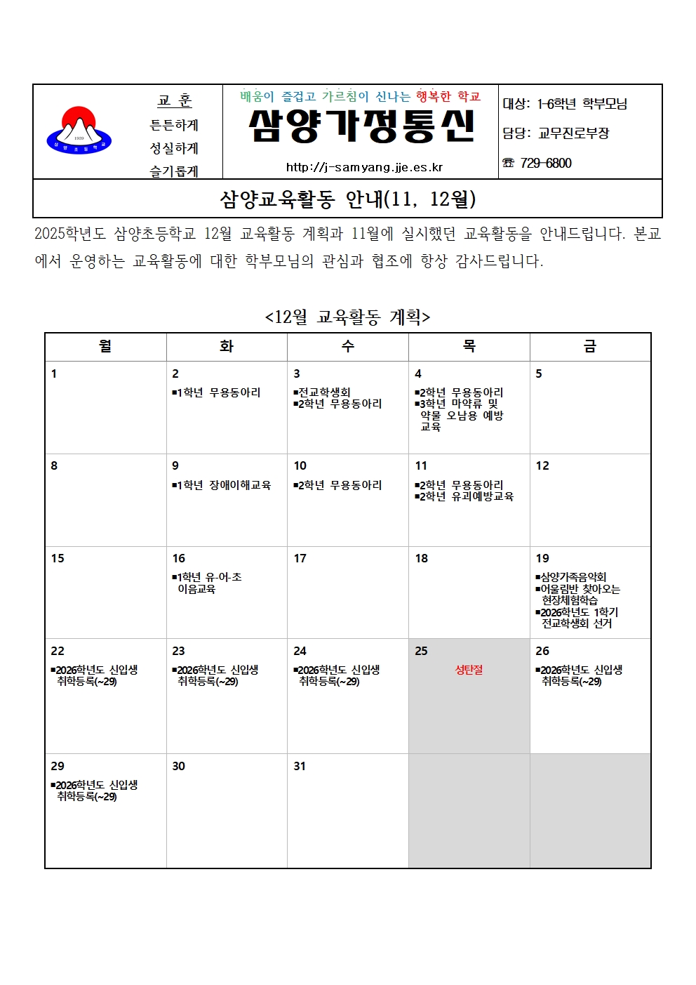 삼양교육활동 안내(11,12월)