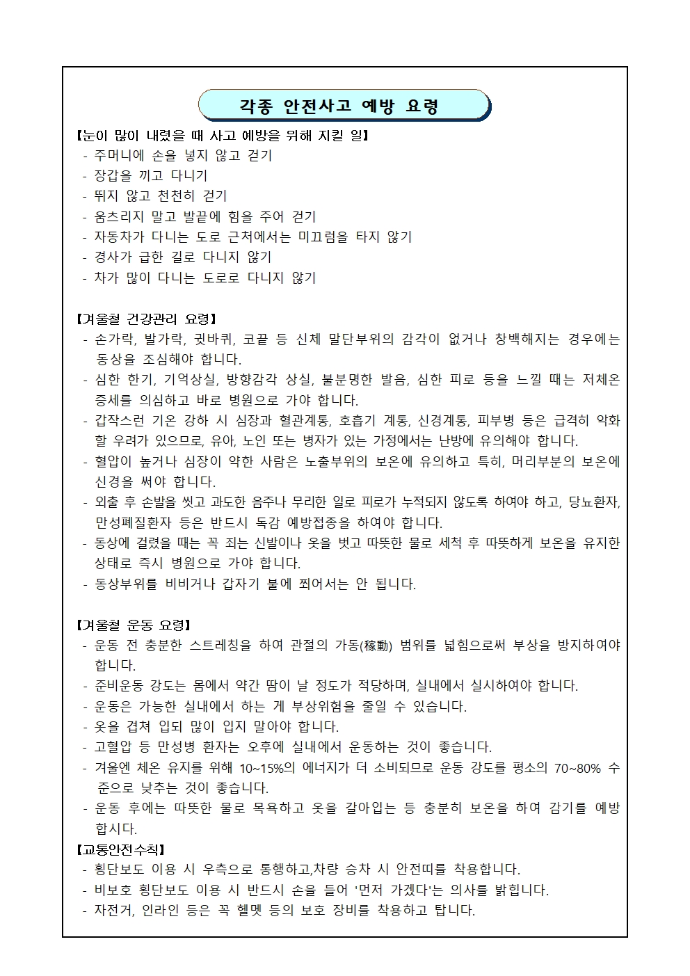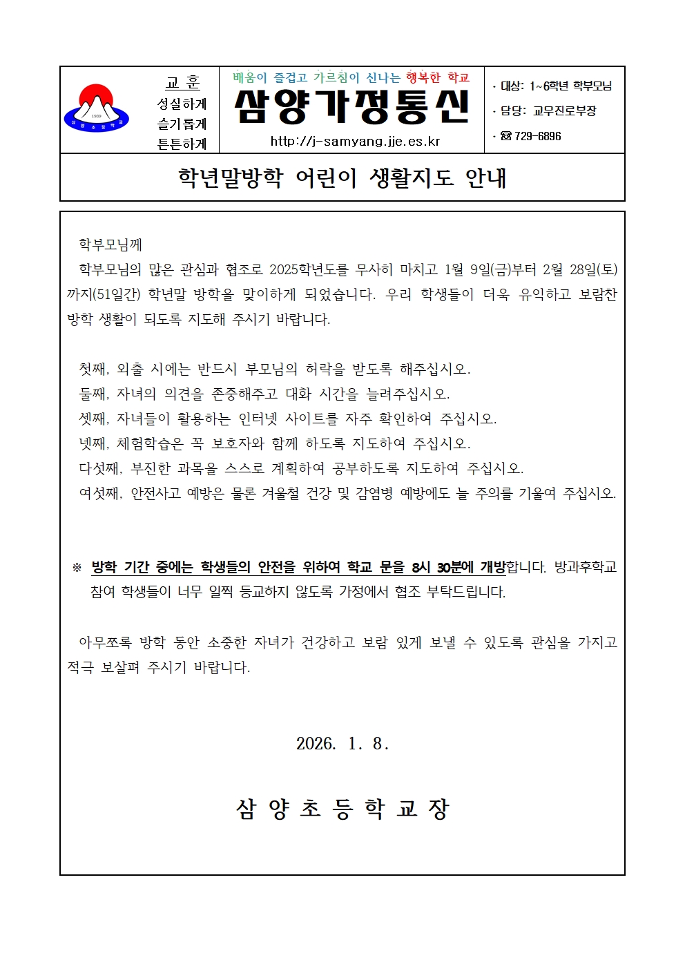 학년말방학 어린이 생활지도 안내