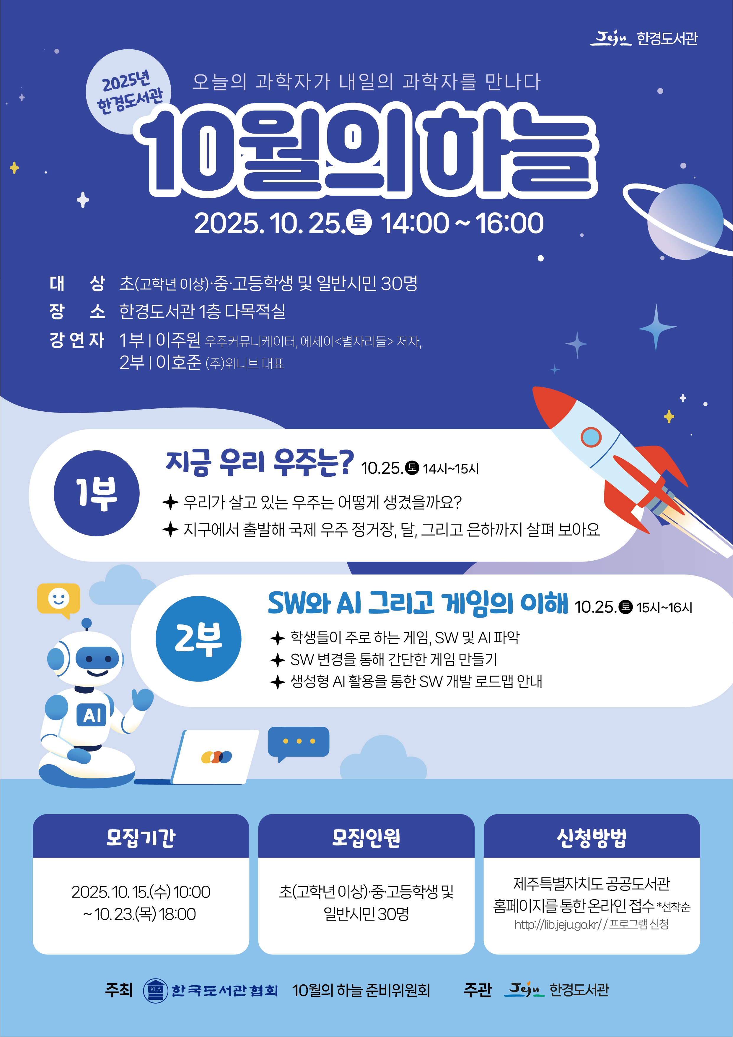 2025년 한경도서관 10월의 하늘 과학 강연 안내