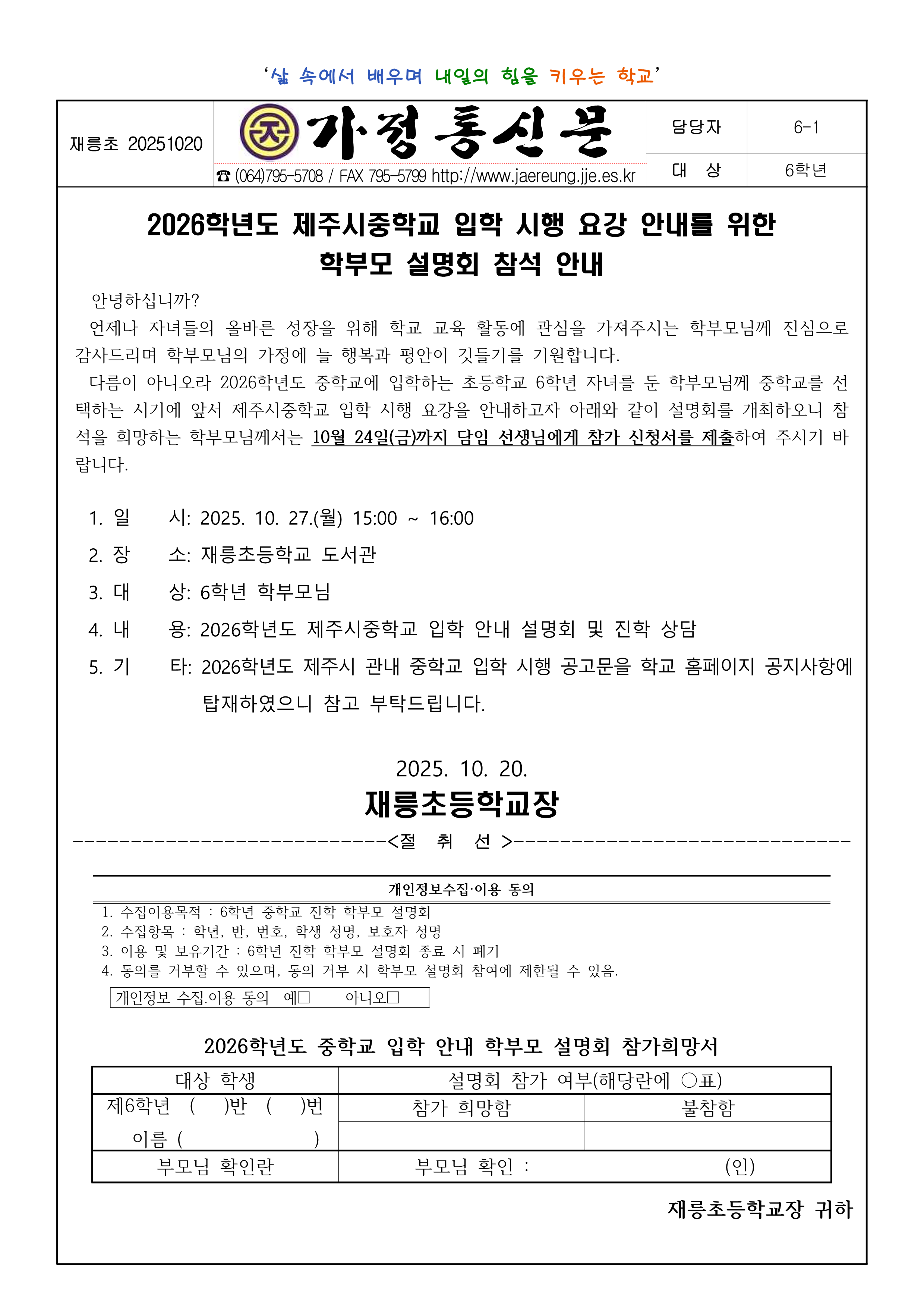 2026학년도 중학교 입학 안내 학부모 설명회 참가 신청 안내 가정통신문_1.png