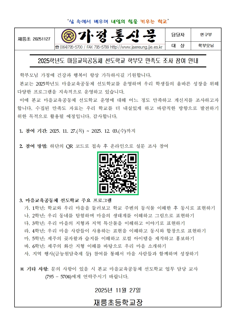 [제주특별자치도교육청 가정통신문]2025 학부모아카데미 12월 프로그램 안내