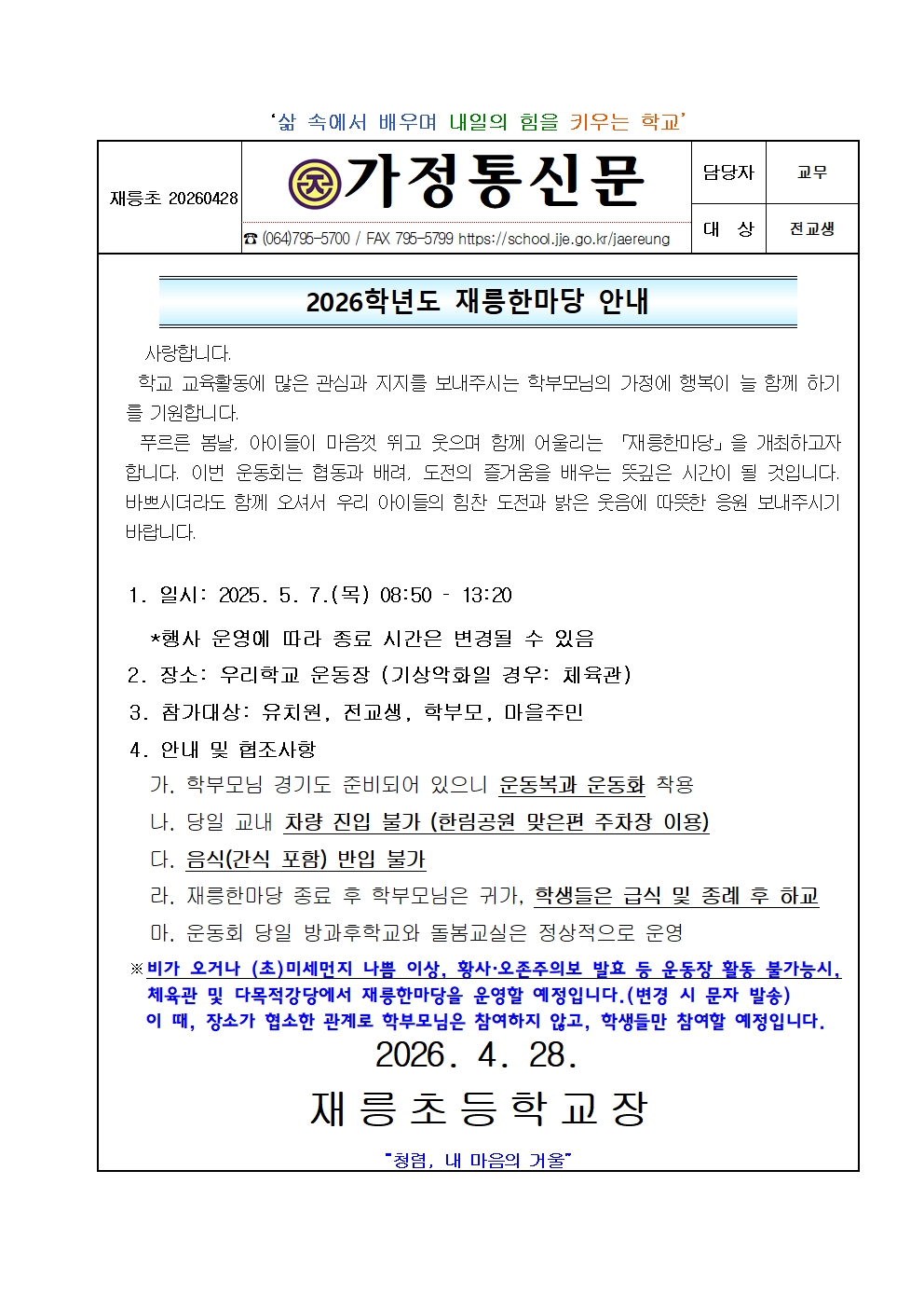 2026학년도 재릉한마당 안내