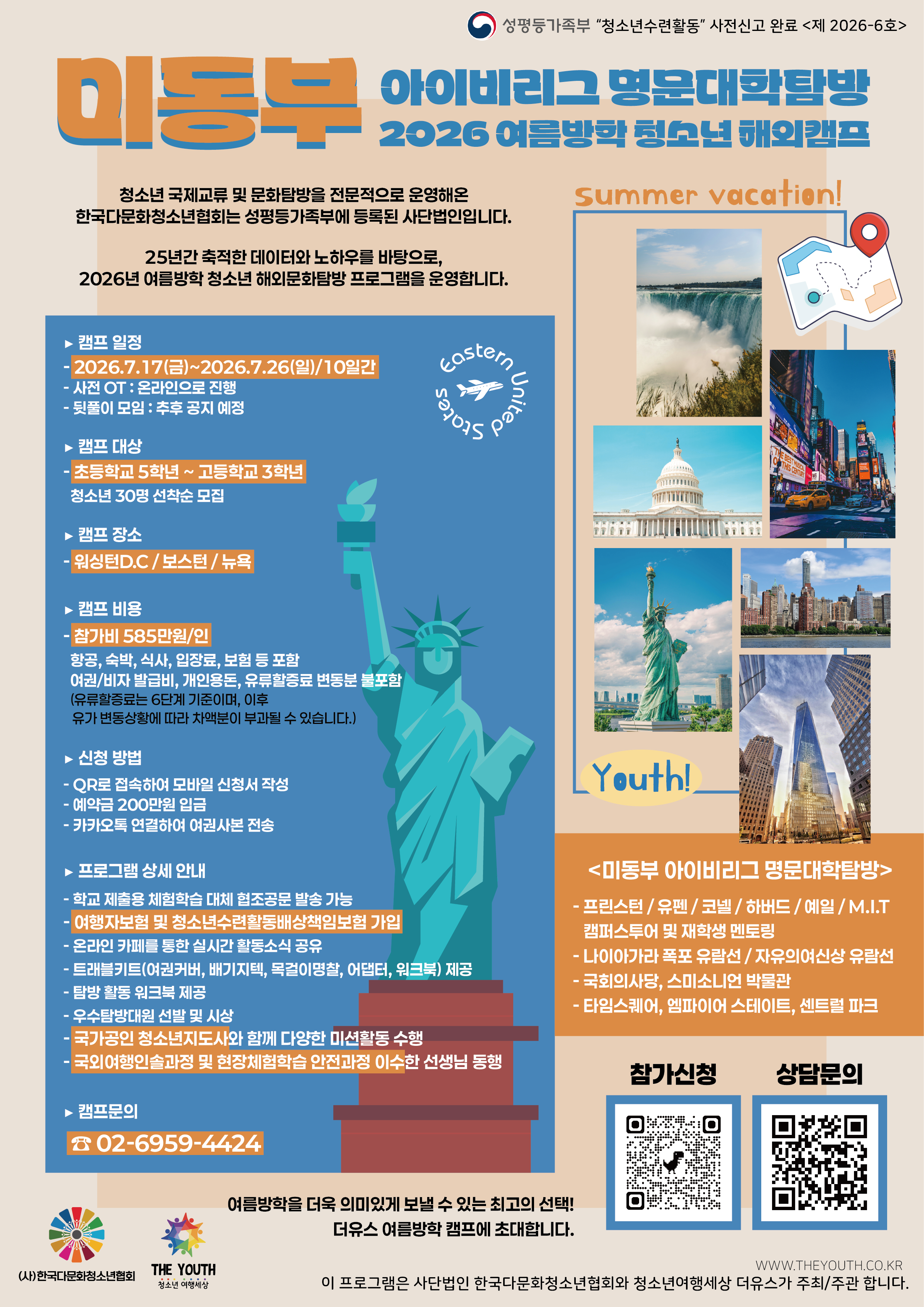 여름방학 청소년 해외문화탐방 - 미동부 아이비리그 대학탐방 참가자 모집