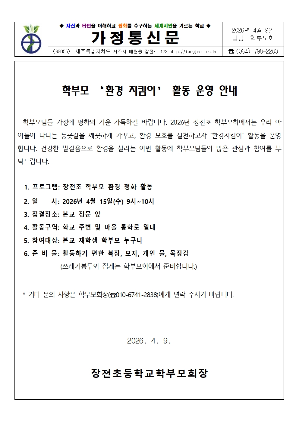 2026 4월 학부모 환경지킴이 활동 운영 안내
