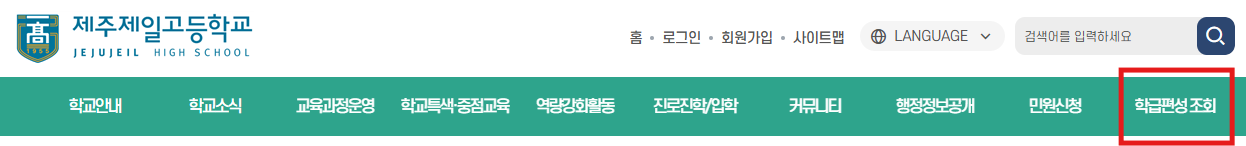 □ 학교 홈페이지 상단바 -학급편성 조회 클릭