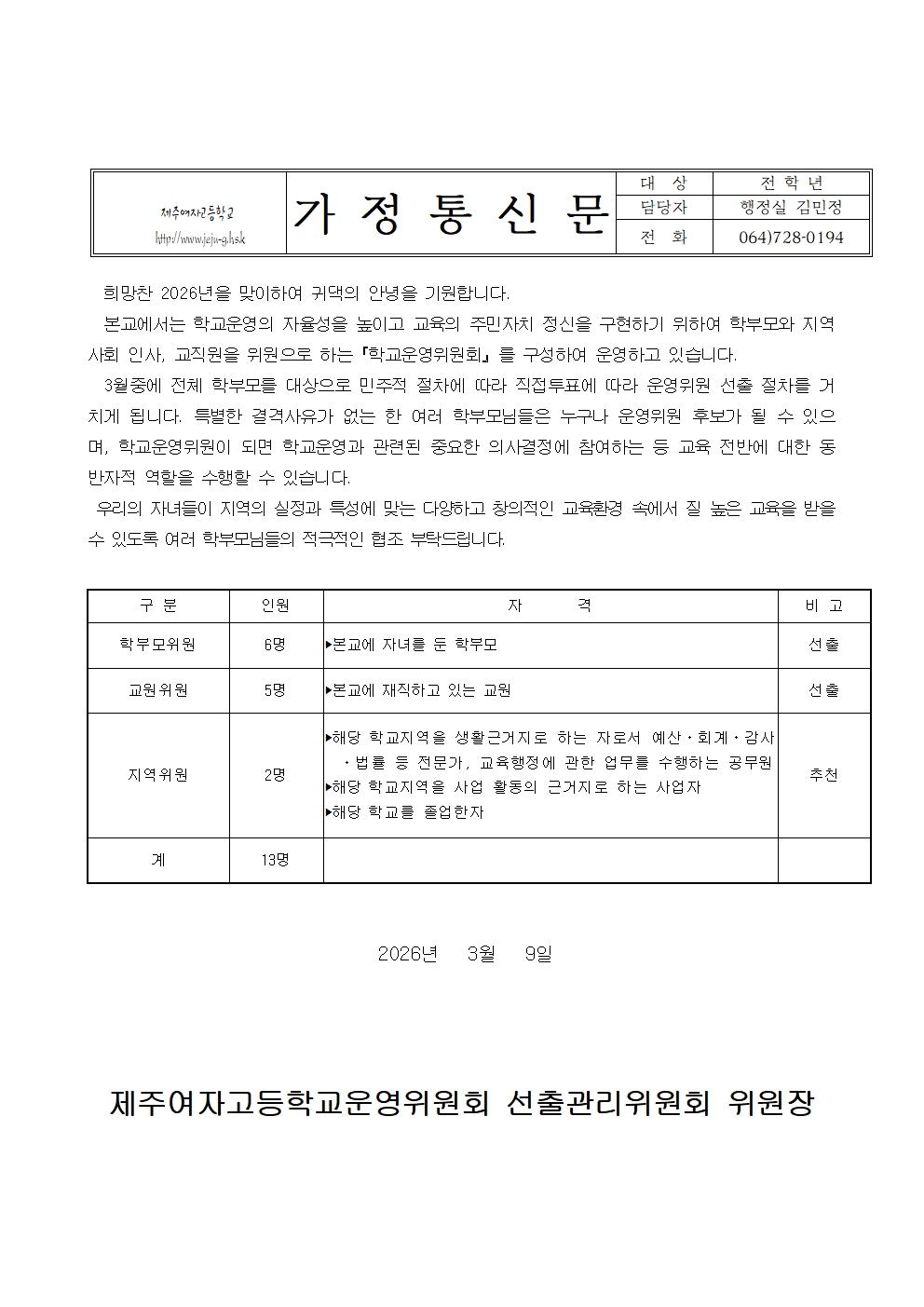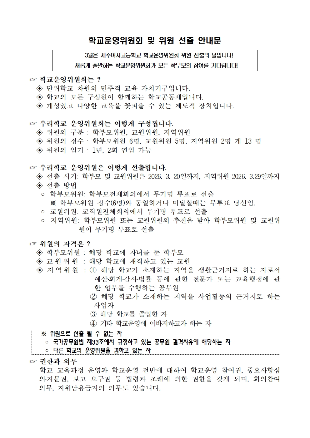 [안내] 2026학년도 학교운영위원회 위원 선출 안내문