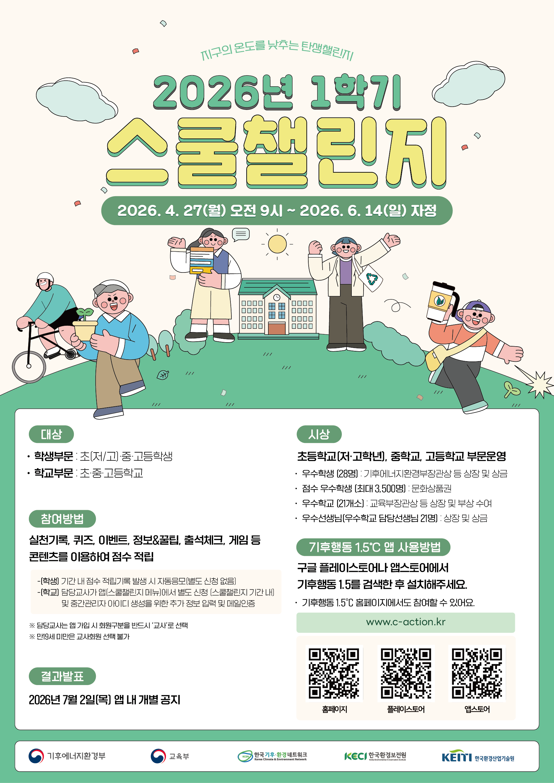 [홍보/참여] 「2026년 1학기 스쿨챌린지(기후행동 1.5℃ 앱)」 추진 관련 협조 요청