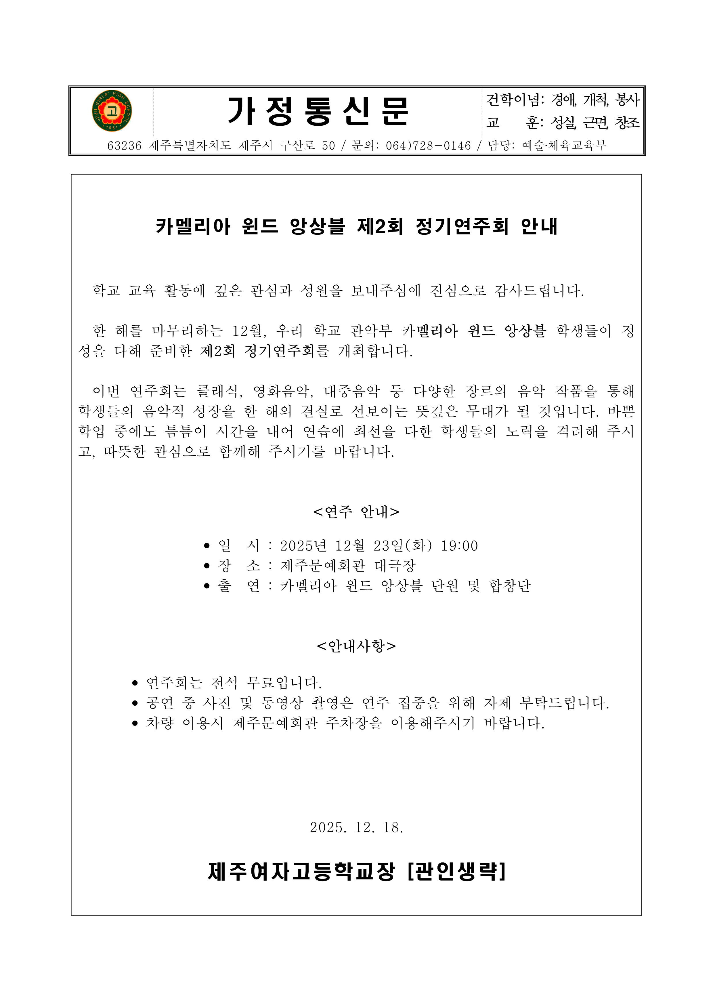 [제주특별자치도교육청 가정통신문]제주교육정책연구센터 12월 카드뉴스