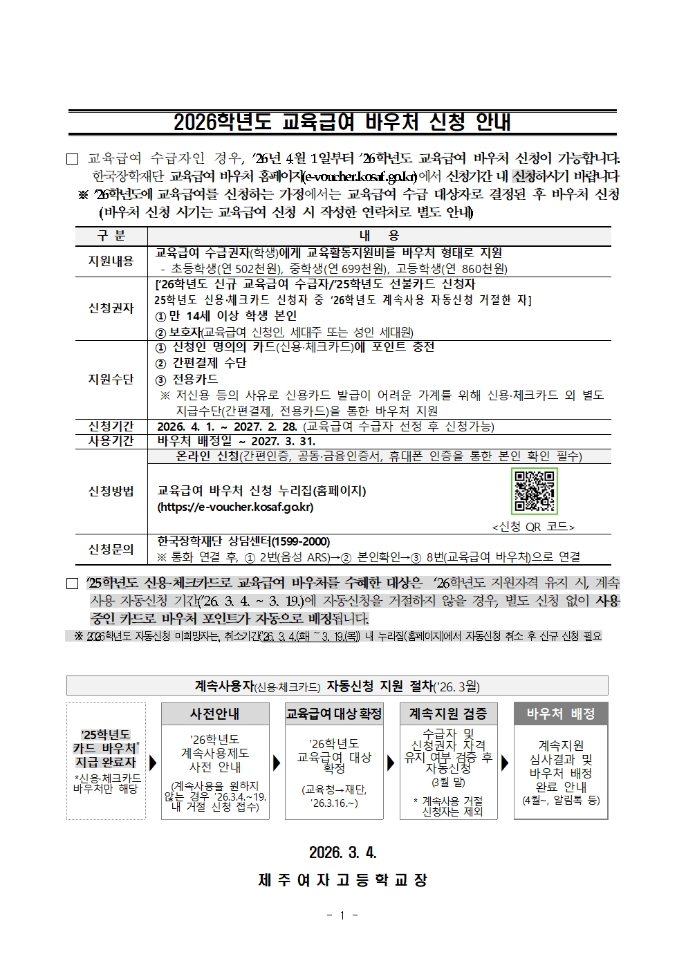 [제주특별자치도교육청 가정통신문] 2026학년도 경계선지능 학생 치료비 지원사업 안내