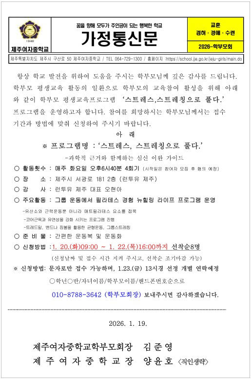 학부모평생교육프로그램 안내 가정통신문
