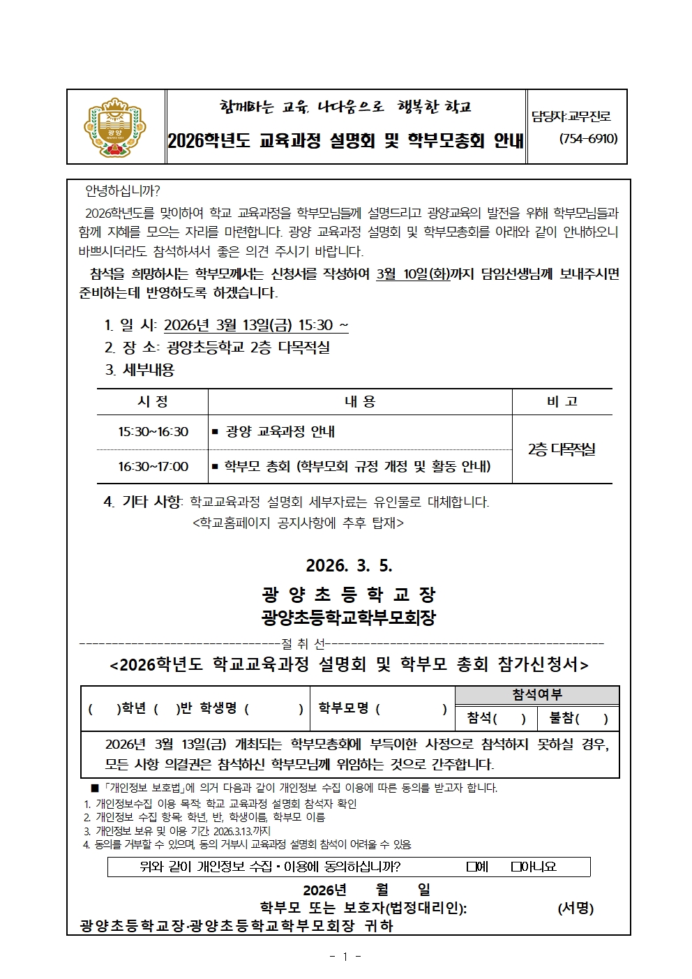 2026학년도 교육과정 설명회 및 학부모총회 안내