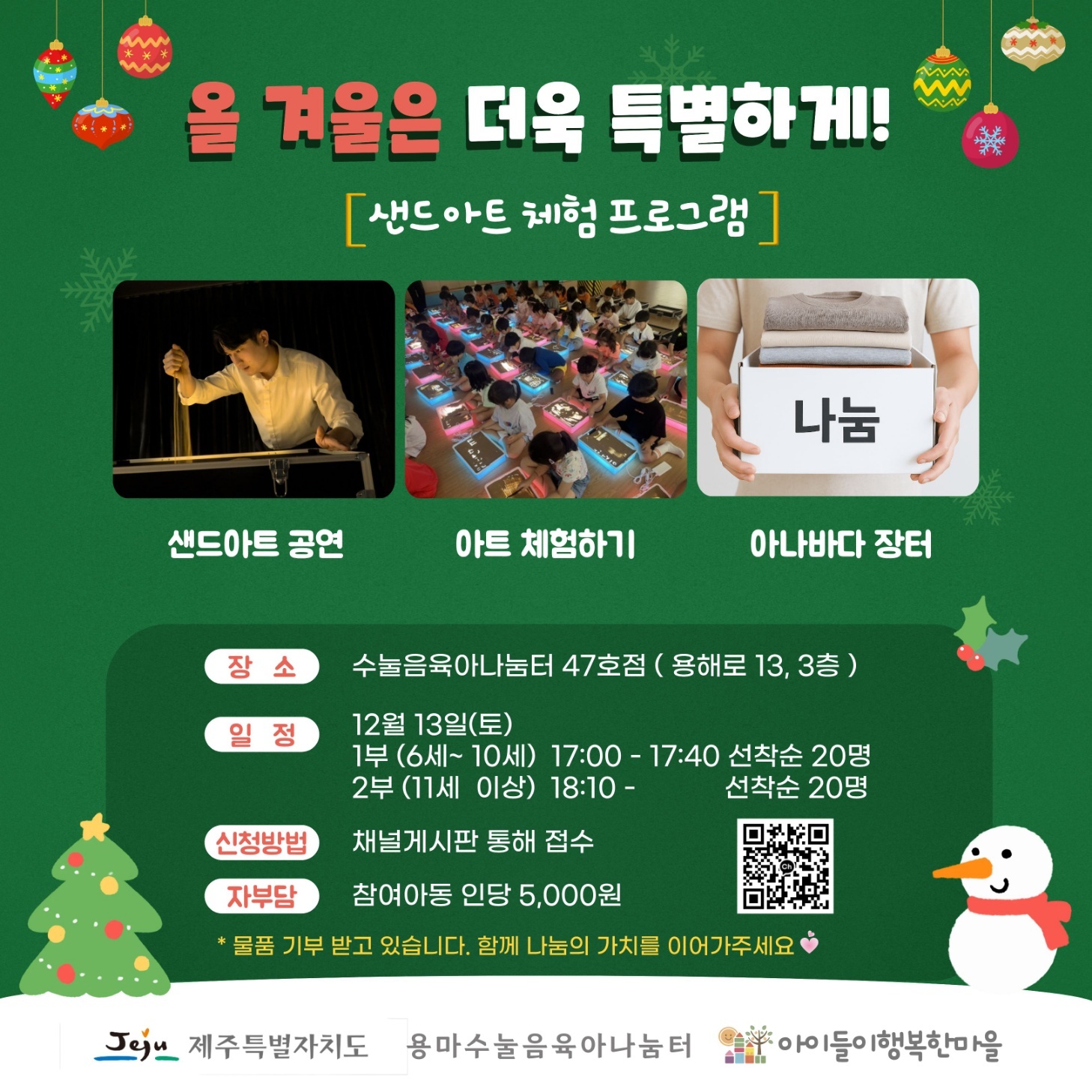 올겨울은 특별하게! 아이들의 상상력을 키워줄 <샌드아트 공연 및 체험> 행사가 열립니다.