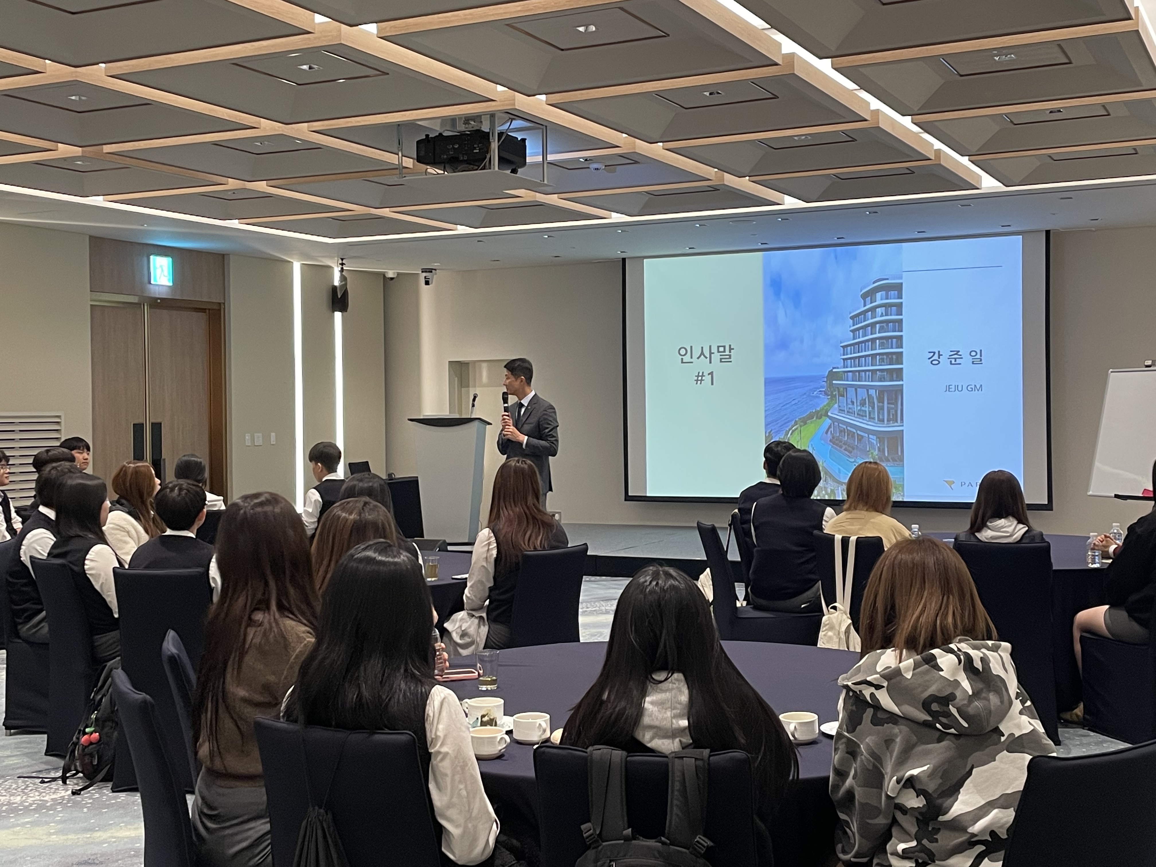 가. 일시: 2025년 10/29(수) 나. 장소: 파르나스 제주 다. 대상: 호텔 취업 희망 학생 30명 라. 내용: 호텔 식음·객실·음료 서비스 등 직무 체험 및 채용 설명