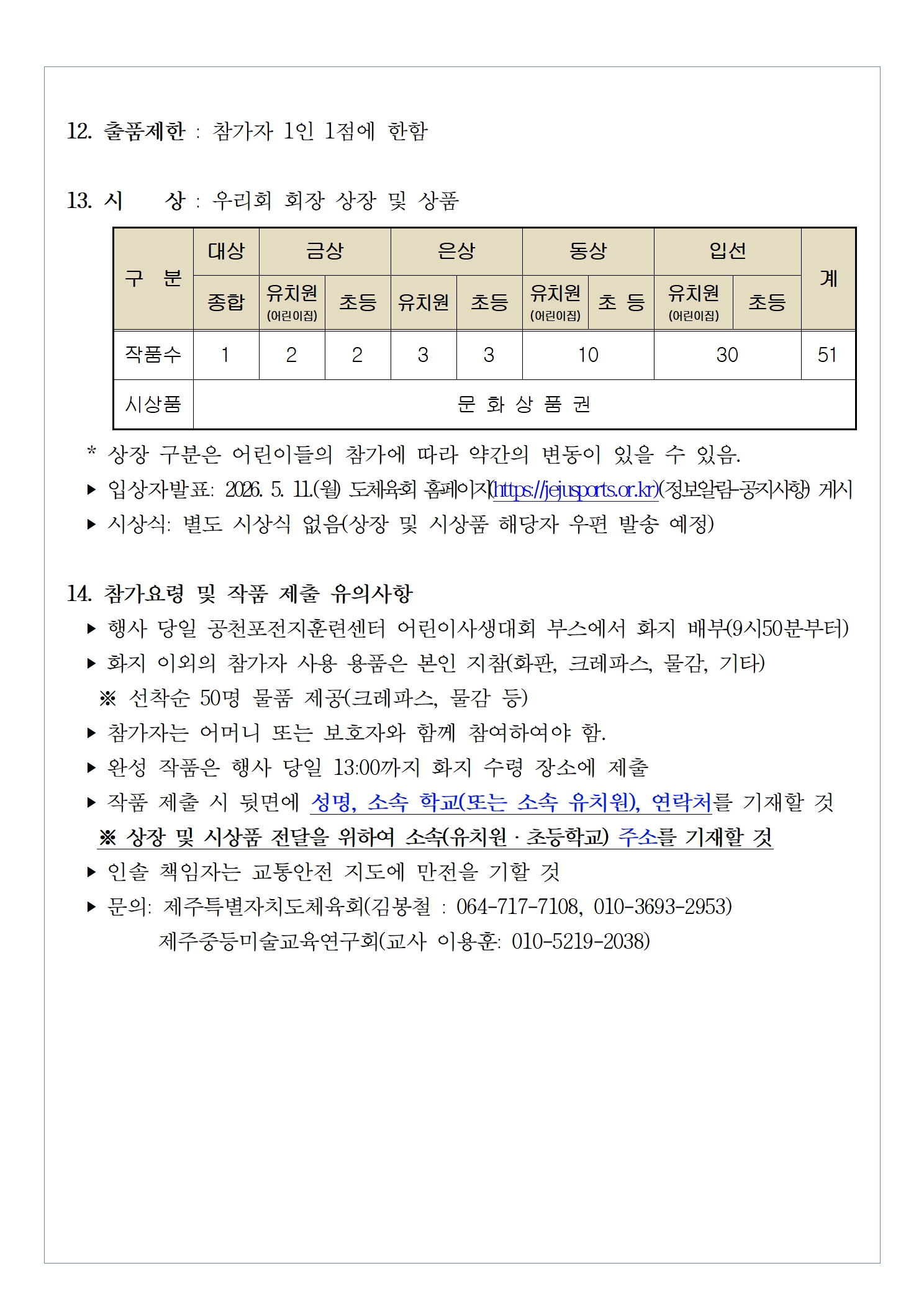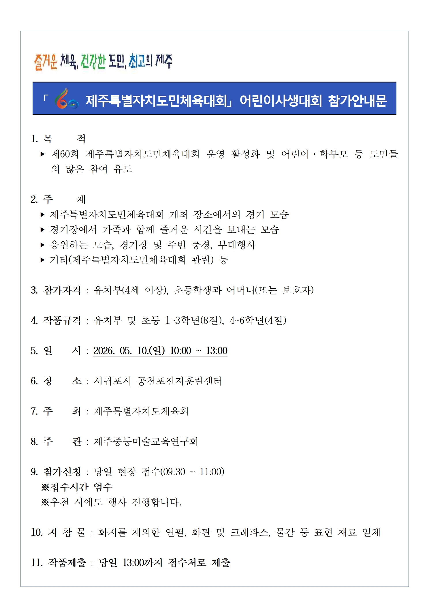 제60회 제주특별자치도민체육대회 어린이사생대회 참가안내