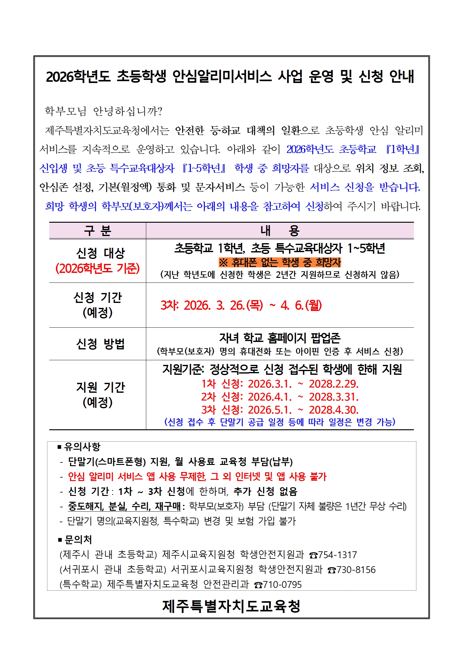2026학년도 초등 안심알리미서비스 3차 신청 안내