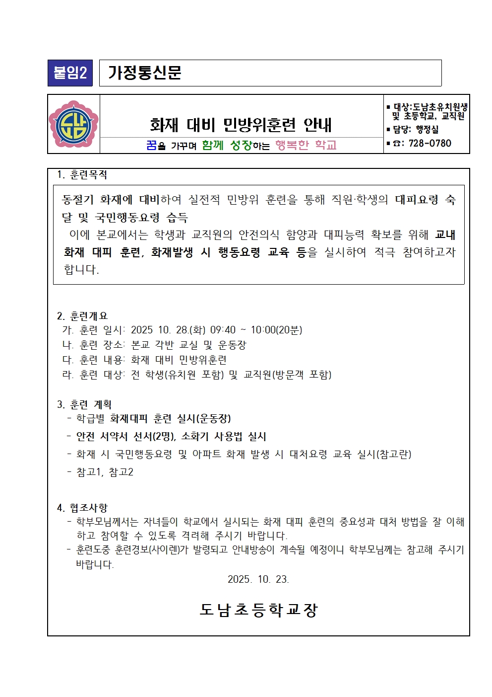 2025년 10월 화재 대비 민방위훈련 가정통신문002.jpg