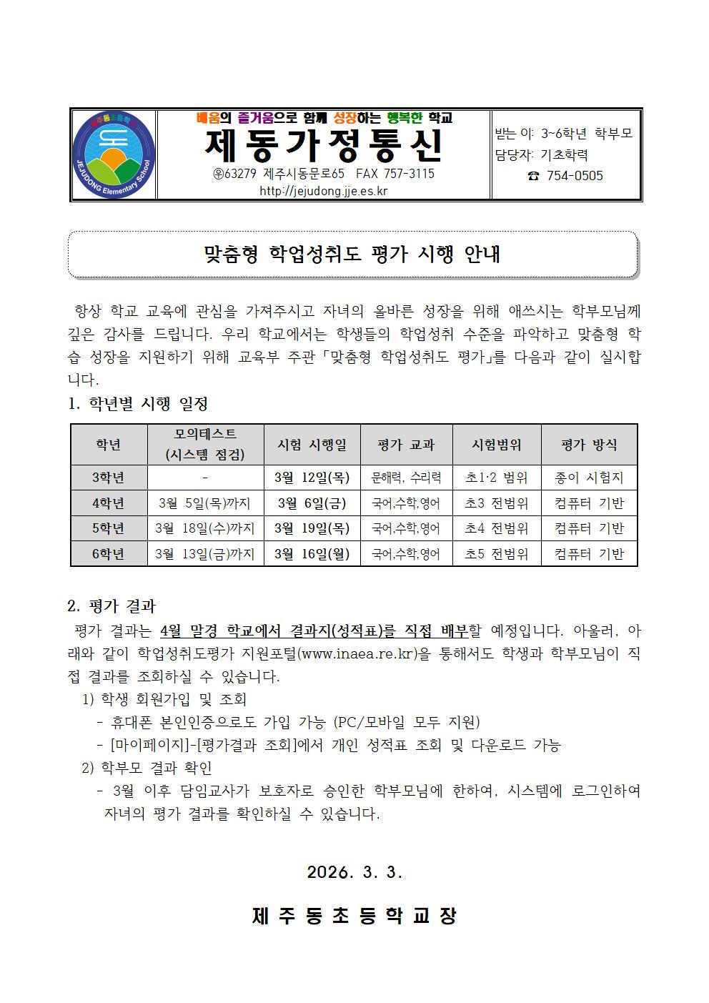 맞춤형학업성취도평가 시행 안내