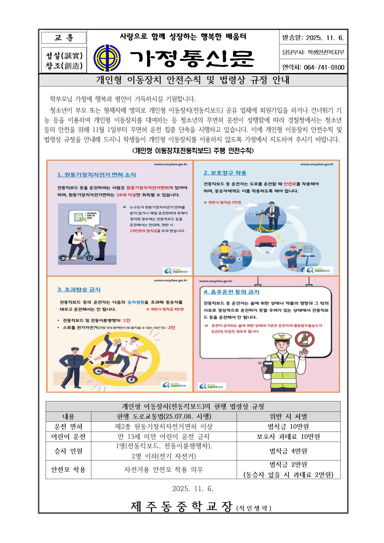 개인형 이동장치 안전수칙 및 법령상 규정 안내