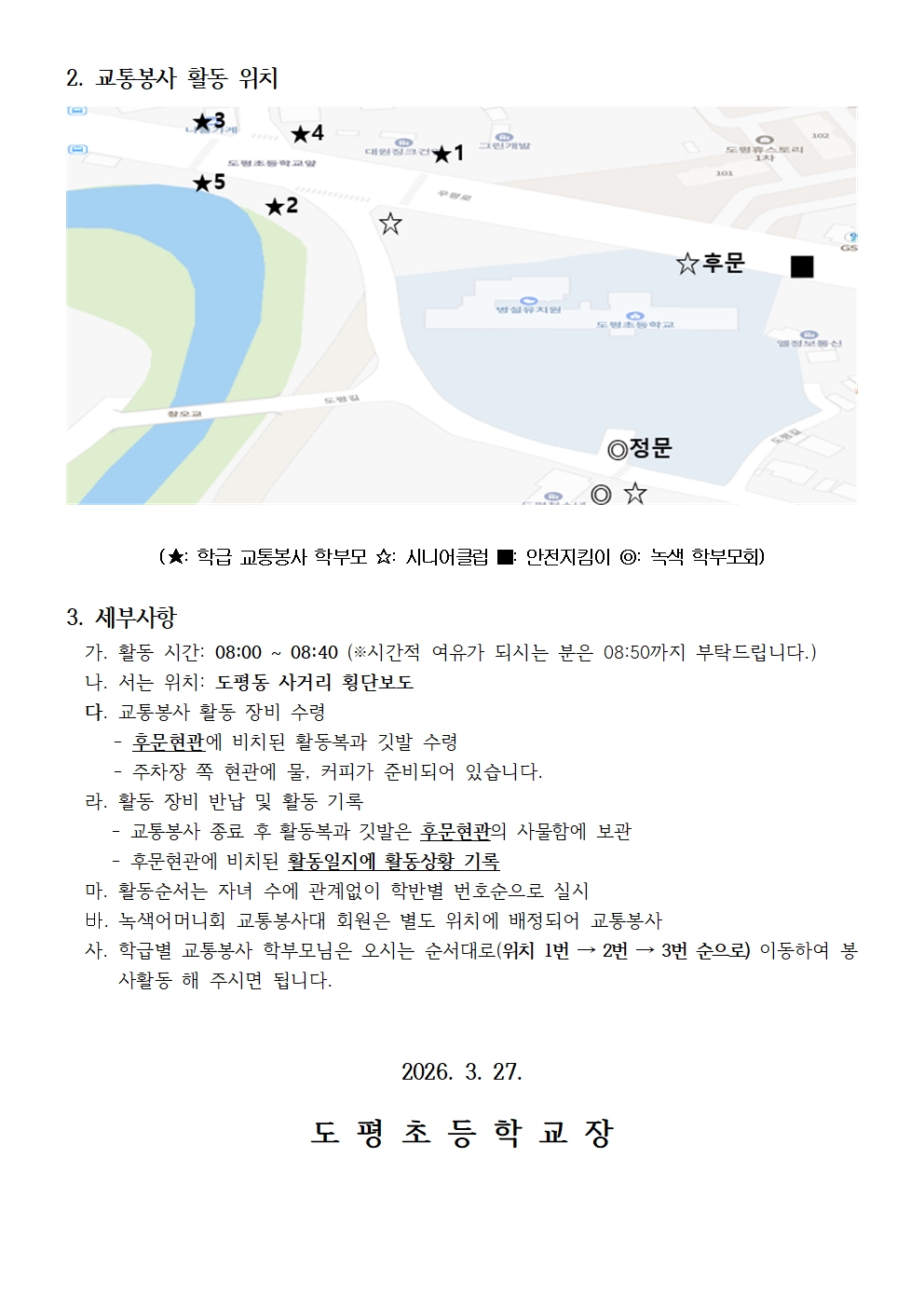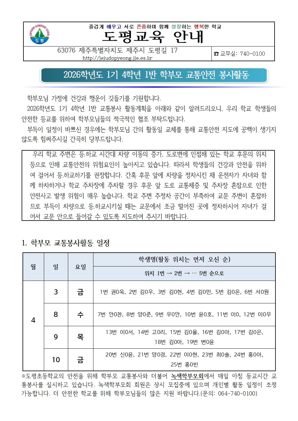 2026학년도 1기 4학년 1반 교통봉사 안내