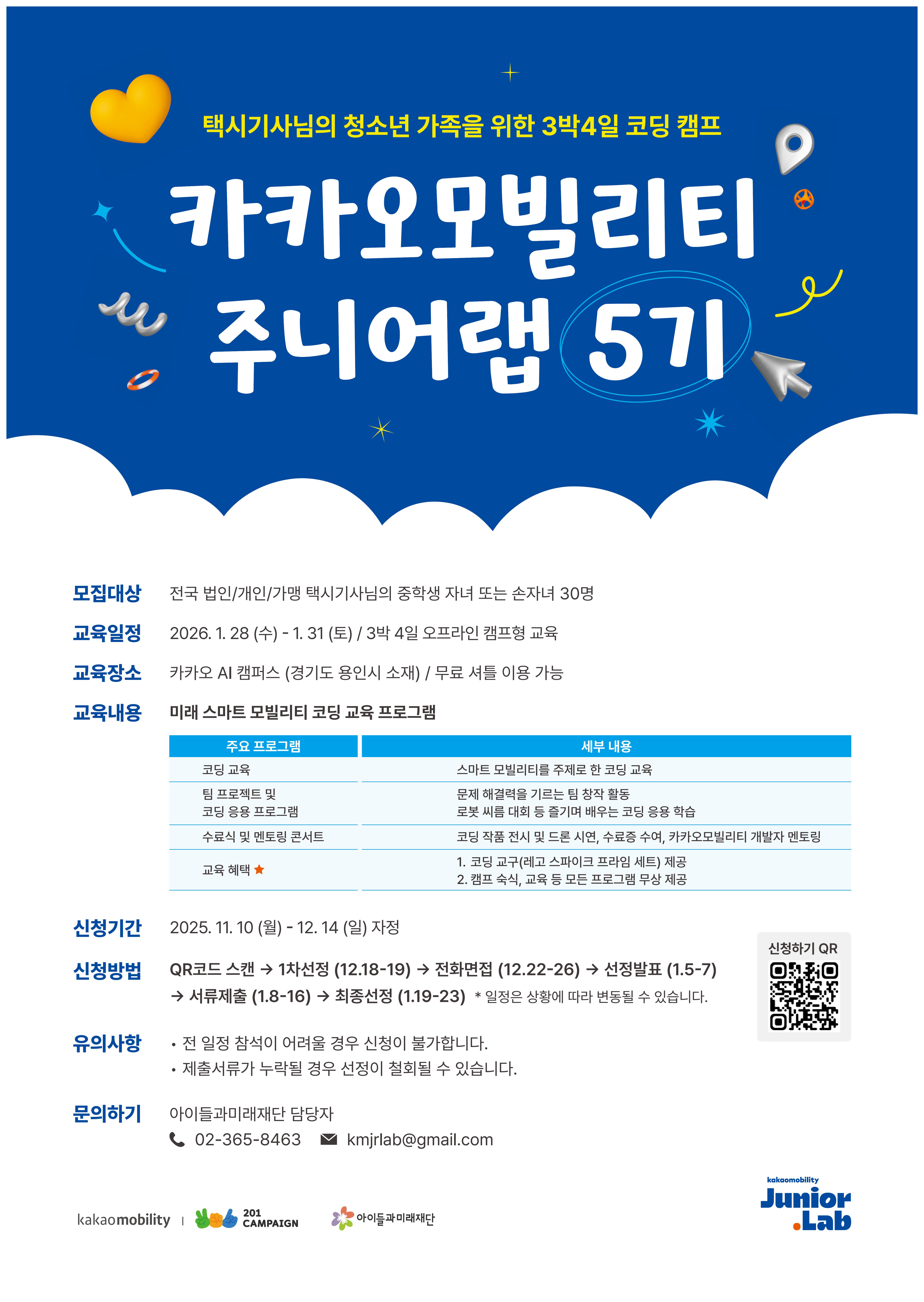 택시기사님의 청소년 가족을 위한 3박 4일 코딩캠프(카카오모빌리티 주니어랩 5기)
