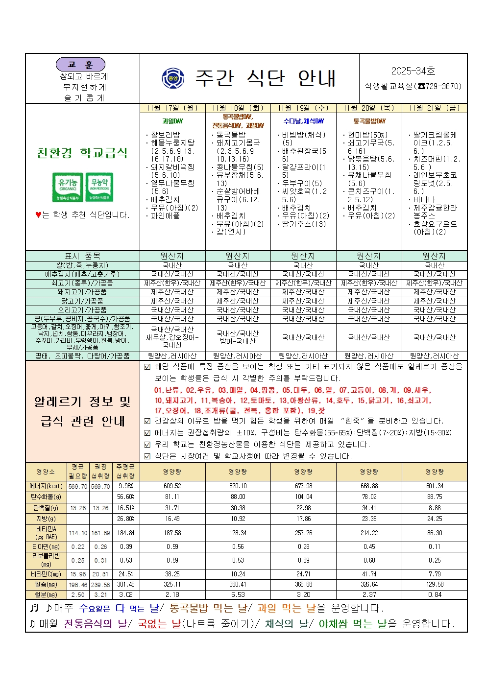식품안전 및 영양, 식생활 교육지(2025-34호, 채소와 과일 먹기, 아침밥 먹기)