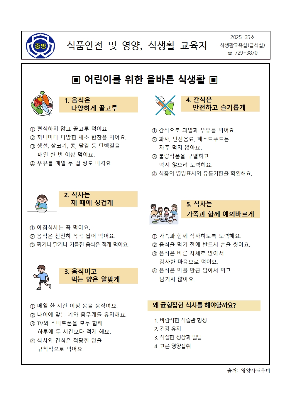 식품안전 및 영양, 식생활교육지(2025-35호, 어린이를 위한 올바른 식생활)