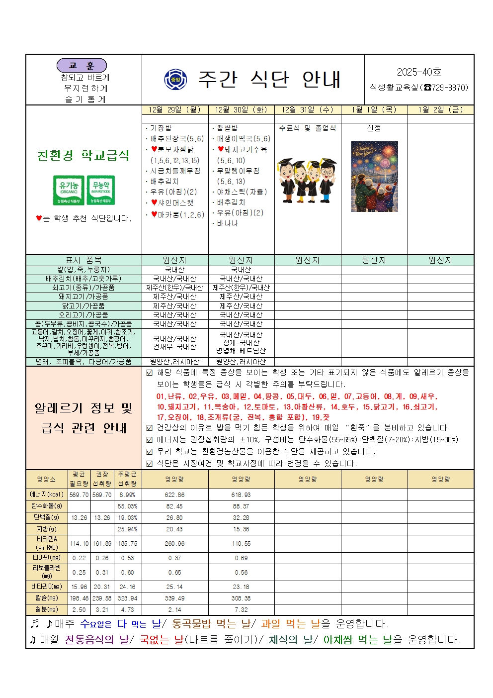 식품안전 및 영양, 식생활 교육지(2025-40호, 겨울철 건강한 건강관리법)