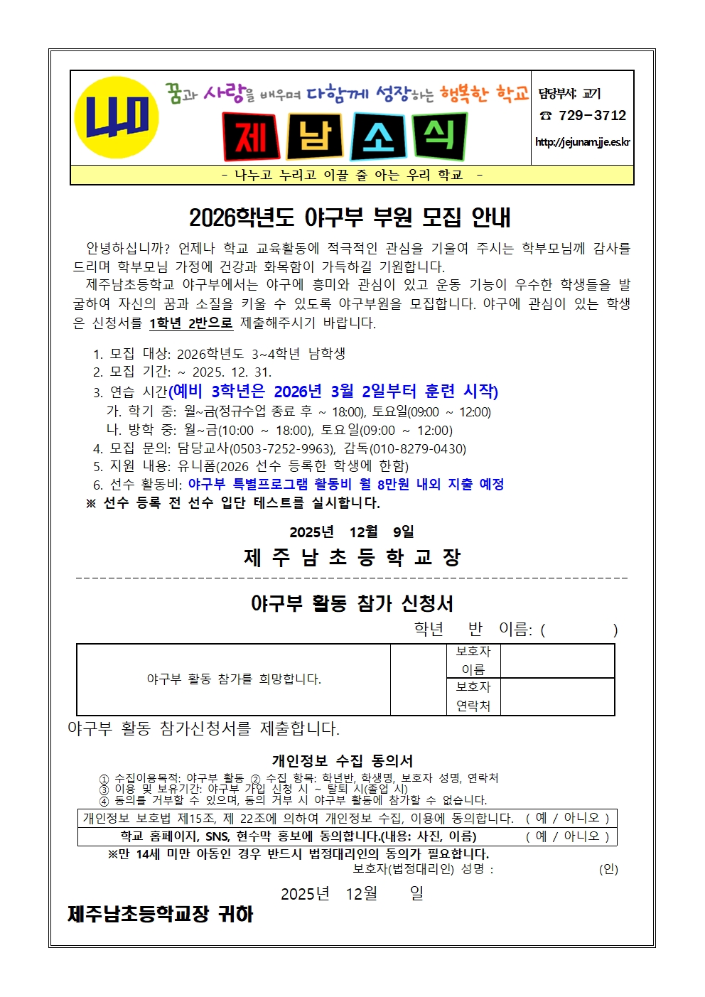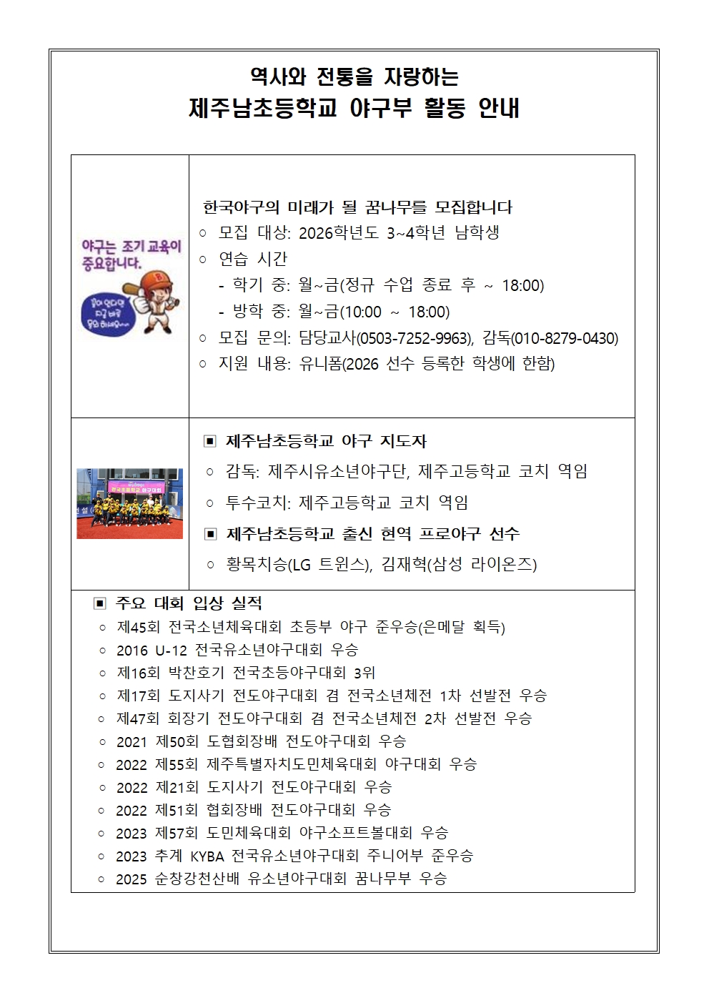 2026 야구부 부원 모집 안내_2026학년도 3,4학년대상