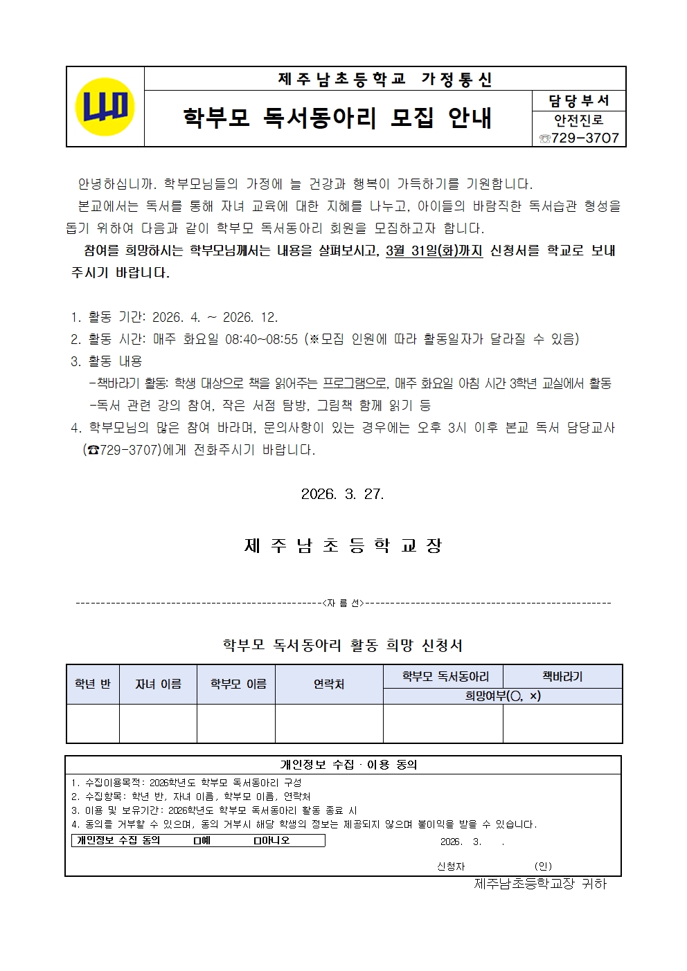가정통신_학부모독서동아리 모집 안내(3.27).hwp