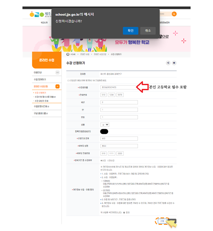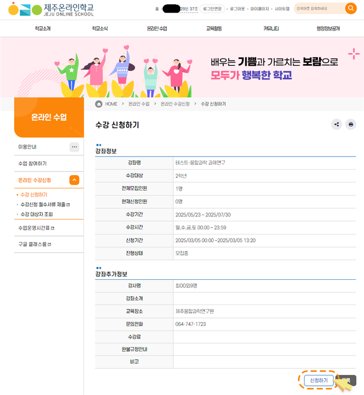 수강할 강좌명 선택 → ‘신청하기’ 클릭