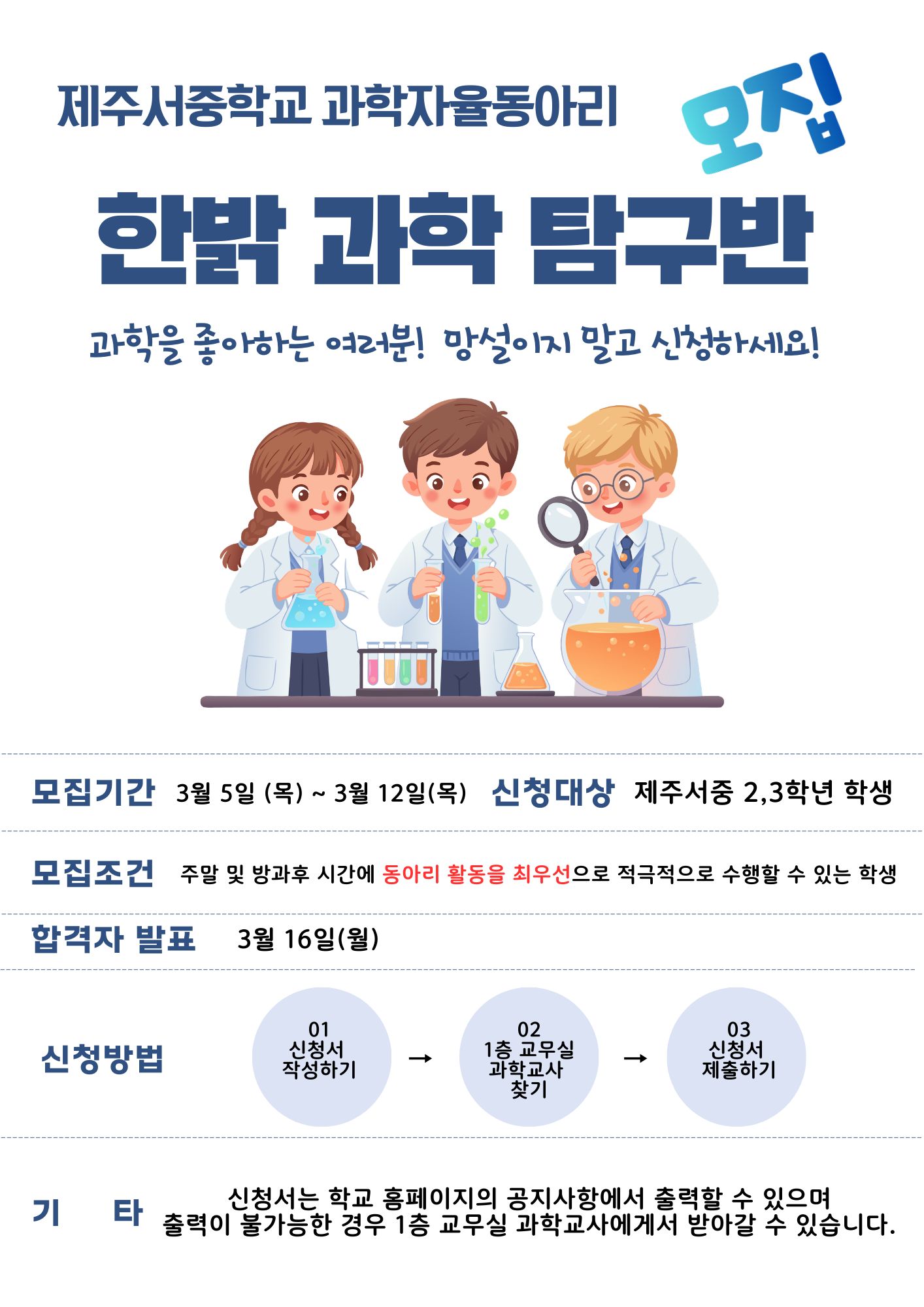 2026 과학 자율동아리(한밝과학탐구반) 모집 안내드립니다.