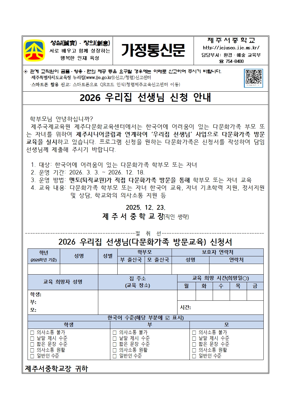 2026 우리집 선생님 신청 안내