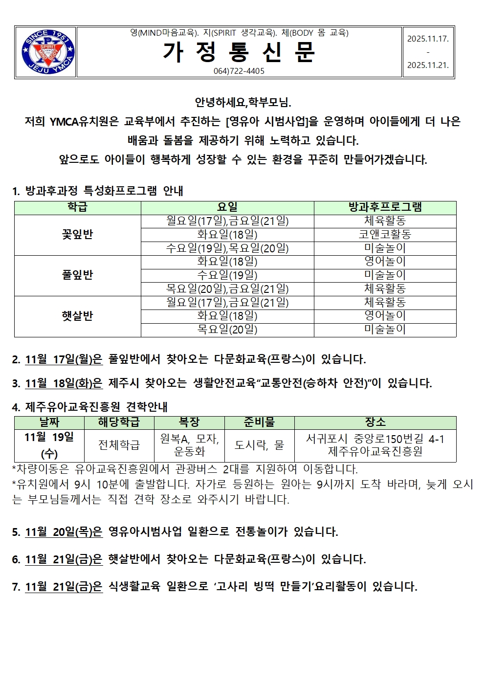2026학년도 제주YMCA유치원 신입 유아 일반모집,선발 공고