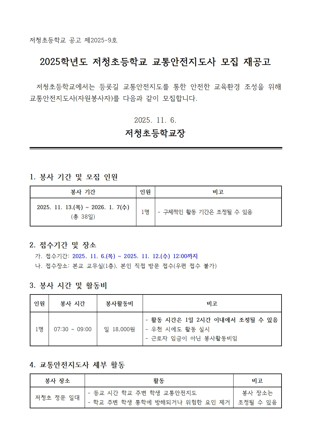 1106 2025학년도 저청초등학교 교통안전지도사 모집 공고.hwp