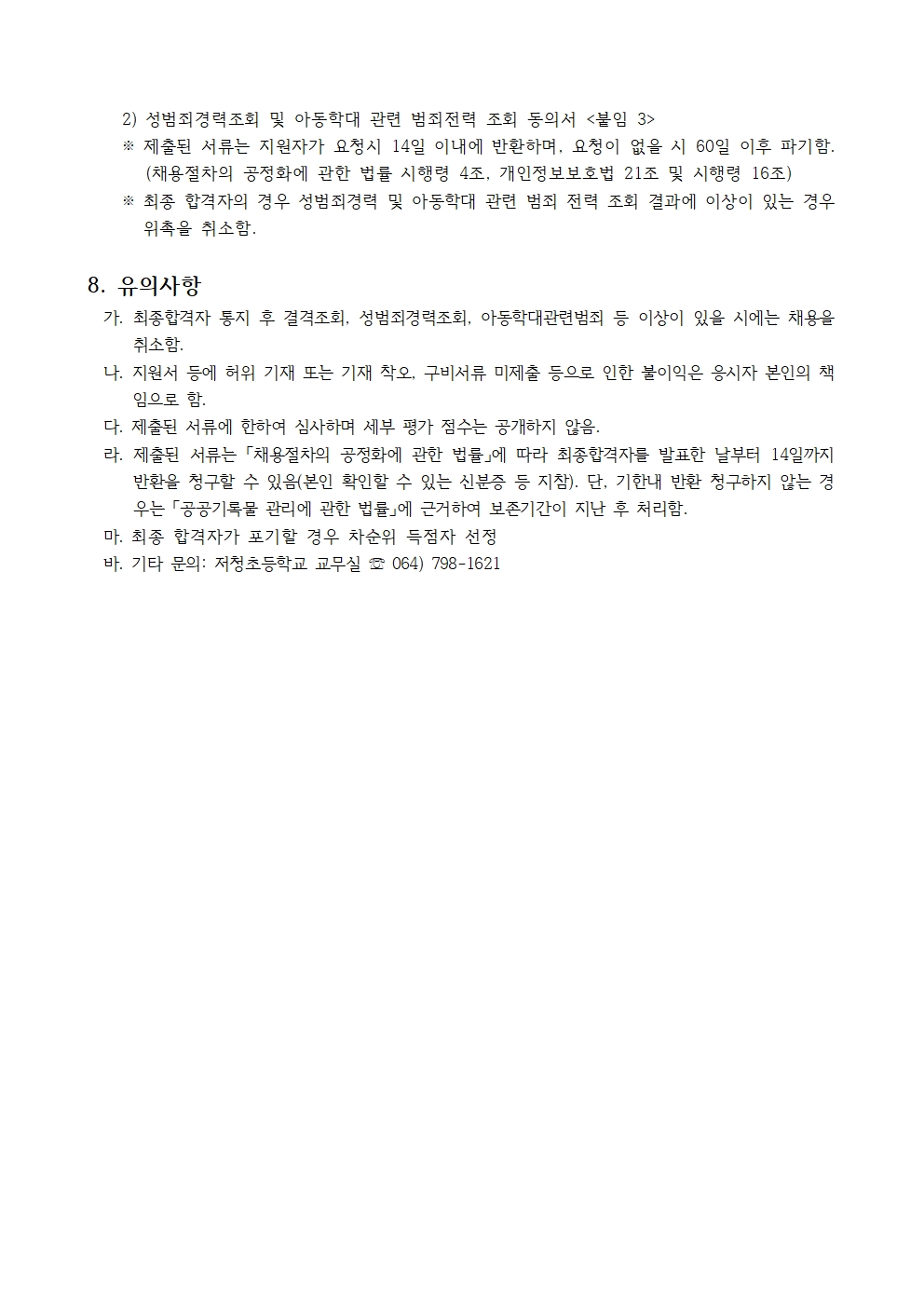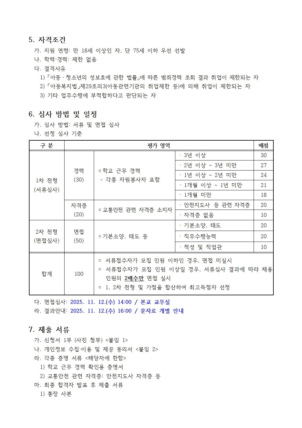 2025학년도 저청초등학교 교통안전지도사 모집 재공고