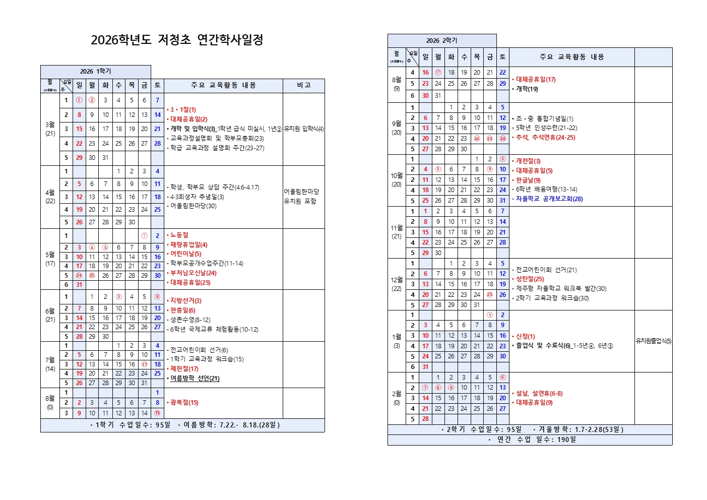 2026학년도 학사일정(5.1 노동절 반영)