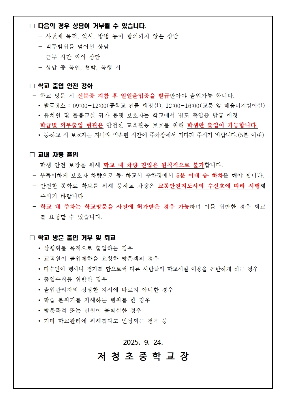 교육활동 보호를 위한 민원 처리 및 학교 출입 절차 안내